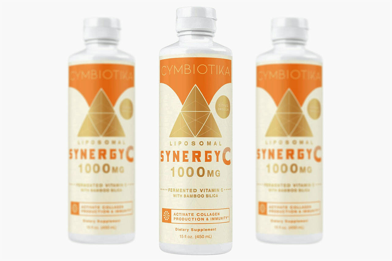 Cymbiotika Synergy C is a vitamin C solution that promotes collagen formation, healthy aging, and immune system health, among other things.
