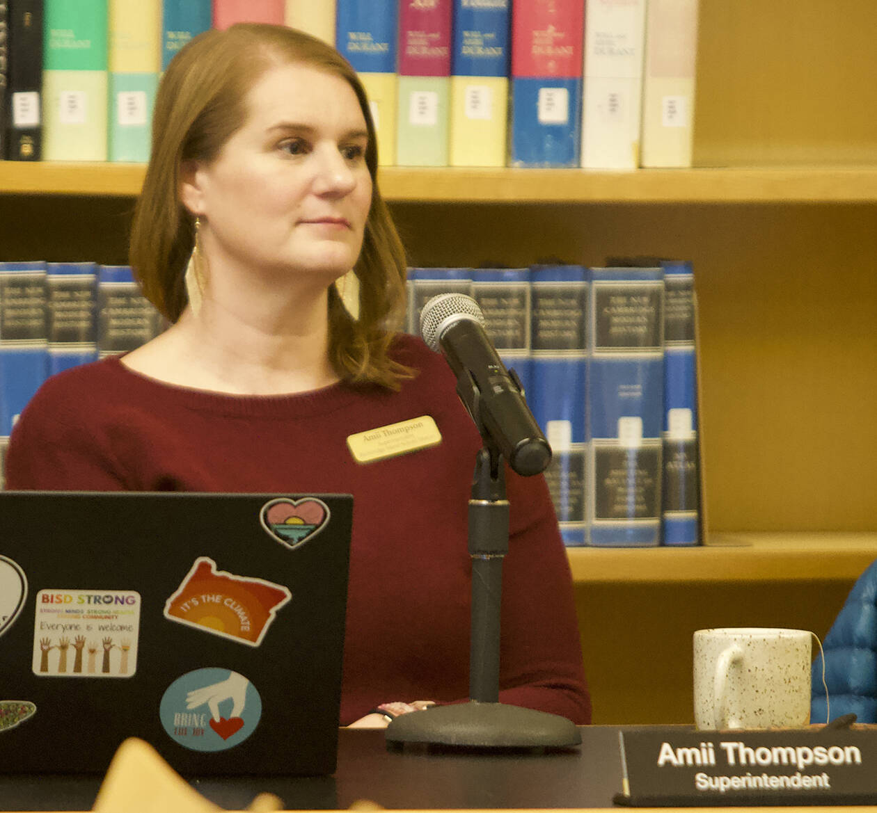 The meeting at the BI high school library was presentation-heavy, with several check-ins on various ongoing projects: updates to facilities, the future of school buildings and the WIAA classification, or sports division reassignment.