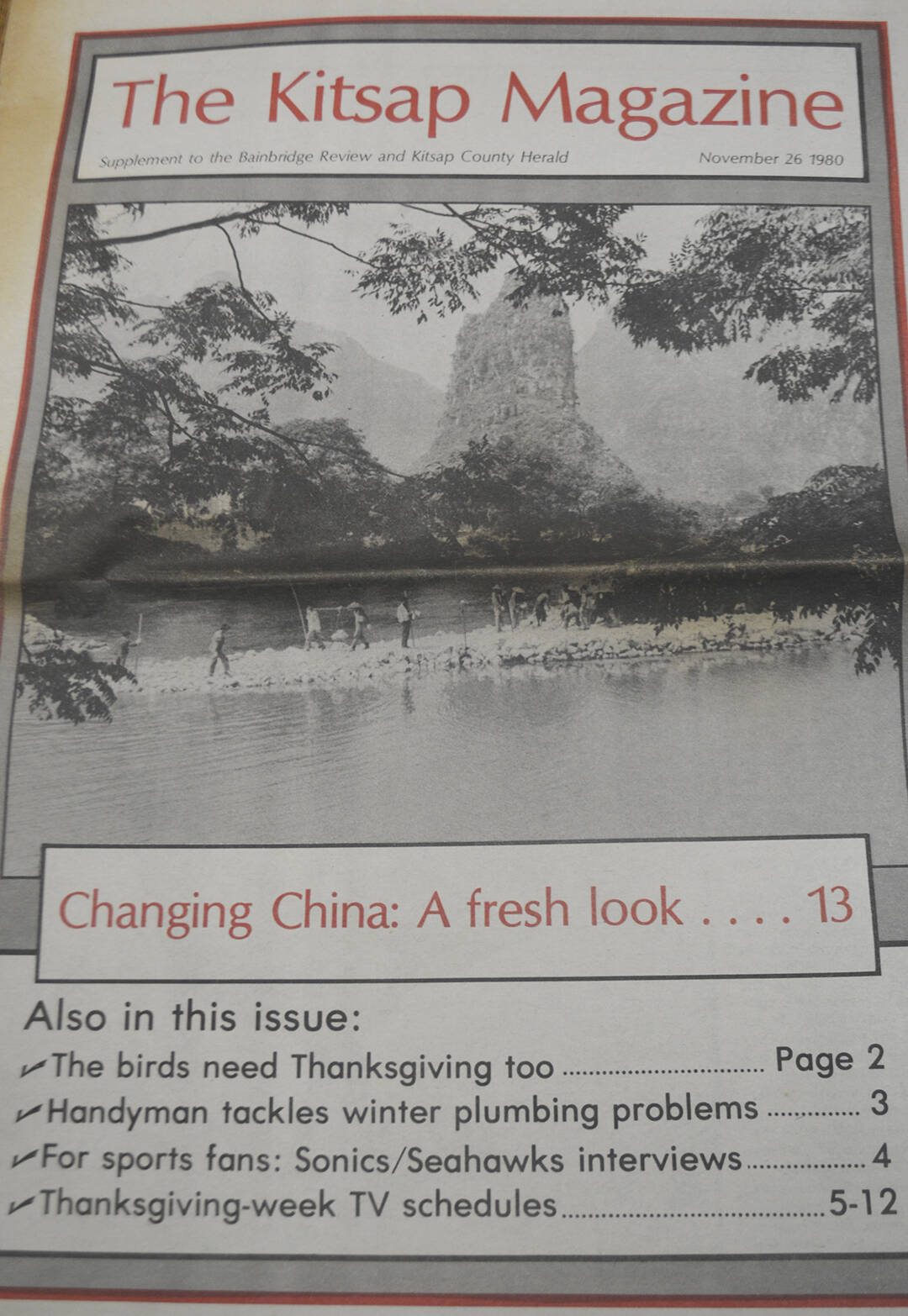 In 1979, Verda traveled to mainland China, soon after it was opened to American travelers for the first time. The Review in those years included a weekly tabloid supplement, “The Kitsap Magazine,” which published a 20-page issue titled “China Today: Close-up of the People’s Republic,” written by Verda following her trip.