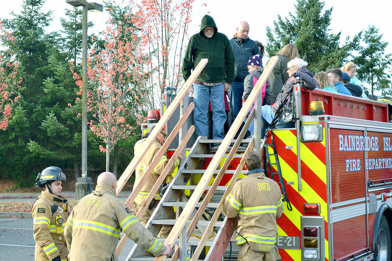 No matter how long it has been going, the annual event remains a staple of life on Bainbridge Island and the enthusiasm is as great as ever. The line for to ride a truck was never short, and afterwards, children often flocked to the engines, ladder truck, ambulances and boat that were on display in the parking lot for them to examine.