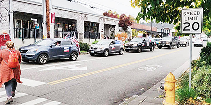 A short-time later, supporters of President Trump came through with huge flags, honking all the way up Winslow Way. Similar car rallies supporting presidential challenger Joe Biden took place on recent weekends on the island.