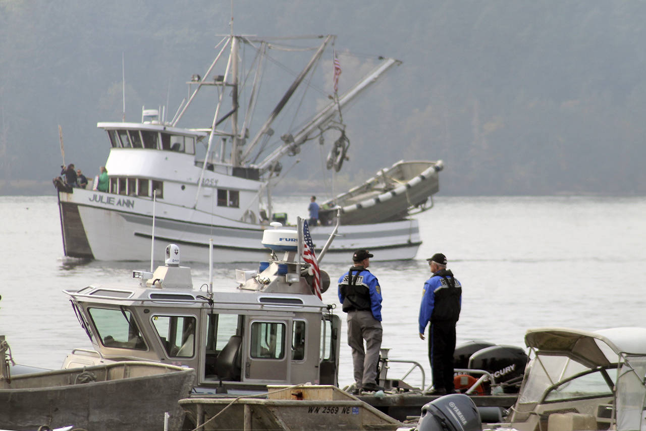 Meanwhile, over at the Harbor Public House Marina in Eagle Harbor, Beardslee was holding a briefing aboard the lead boat, the 50-foot-long Galactic Ice, captained by Riley Starks of Lummi Island Wild. Around 1 p.m., they got underway for the rendezvous.