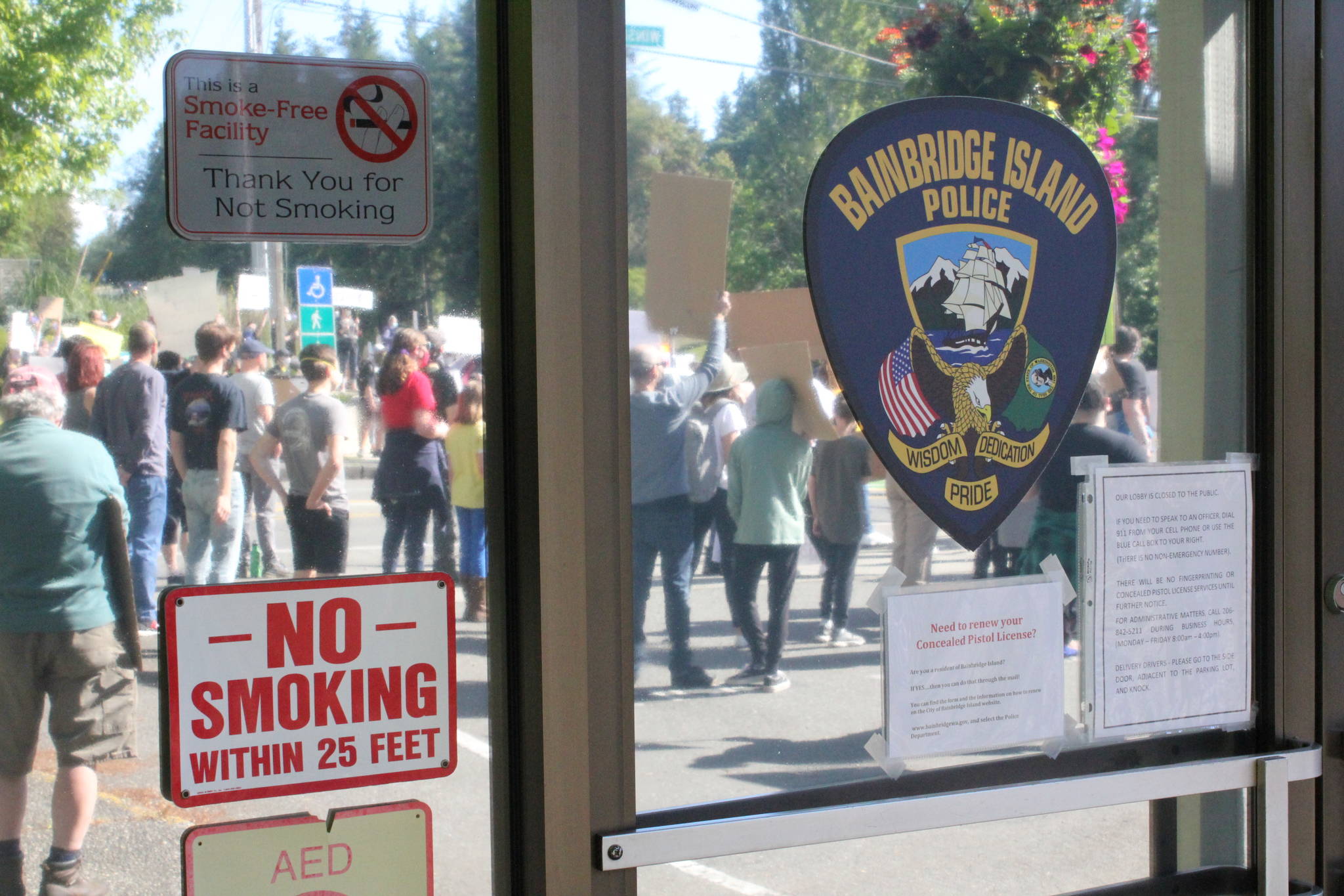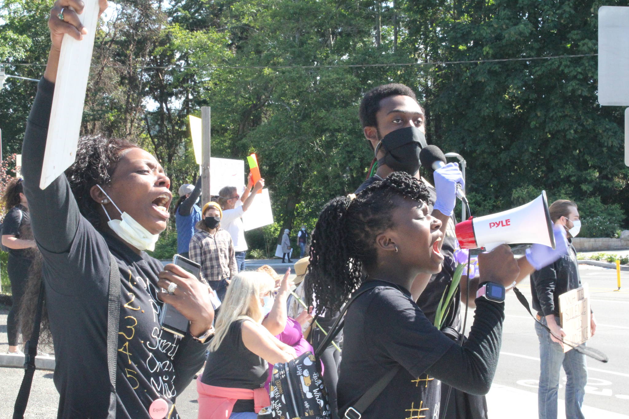 Hundreds of demonstrators filled the sidewalks on all four corners of the Highway 305-Winslow Way intersection on Bainbridge Island Thursday, in response to the May 25 death of George Floyd at the hands of Minneapolis police.