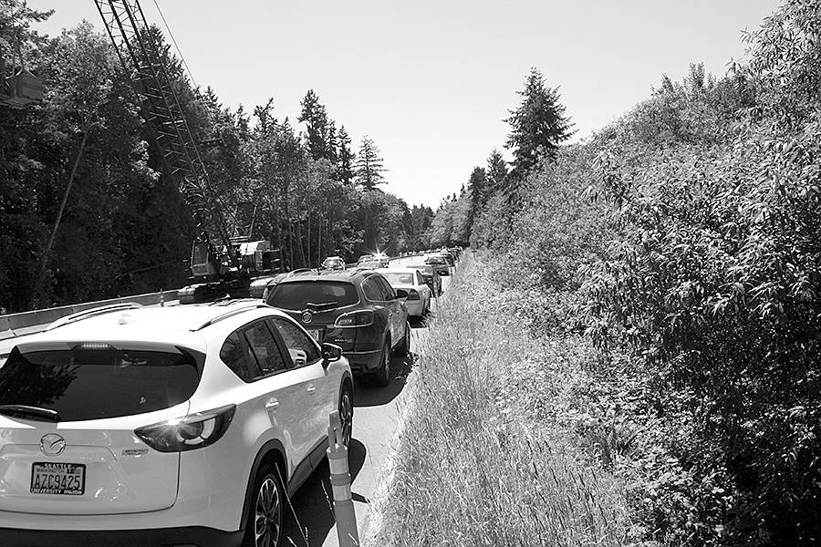 Construction on the first mile of the Sound to Olympics Trail has taken up one of the northbound lanes, whittling the road down to just a single lane for northbound traffic and one for southbound traffic.