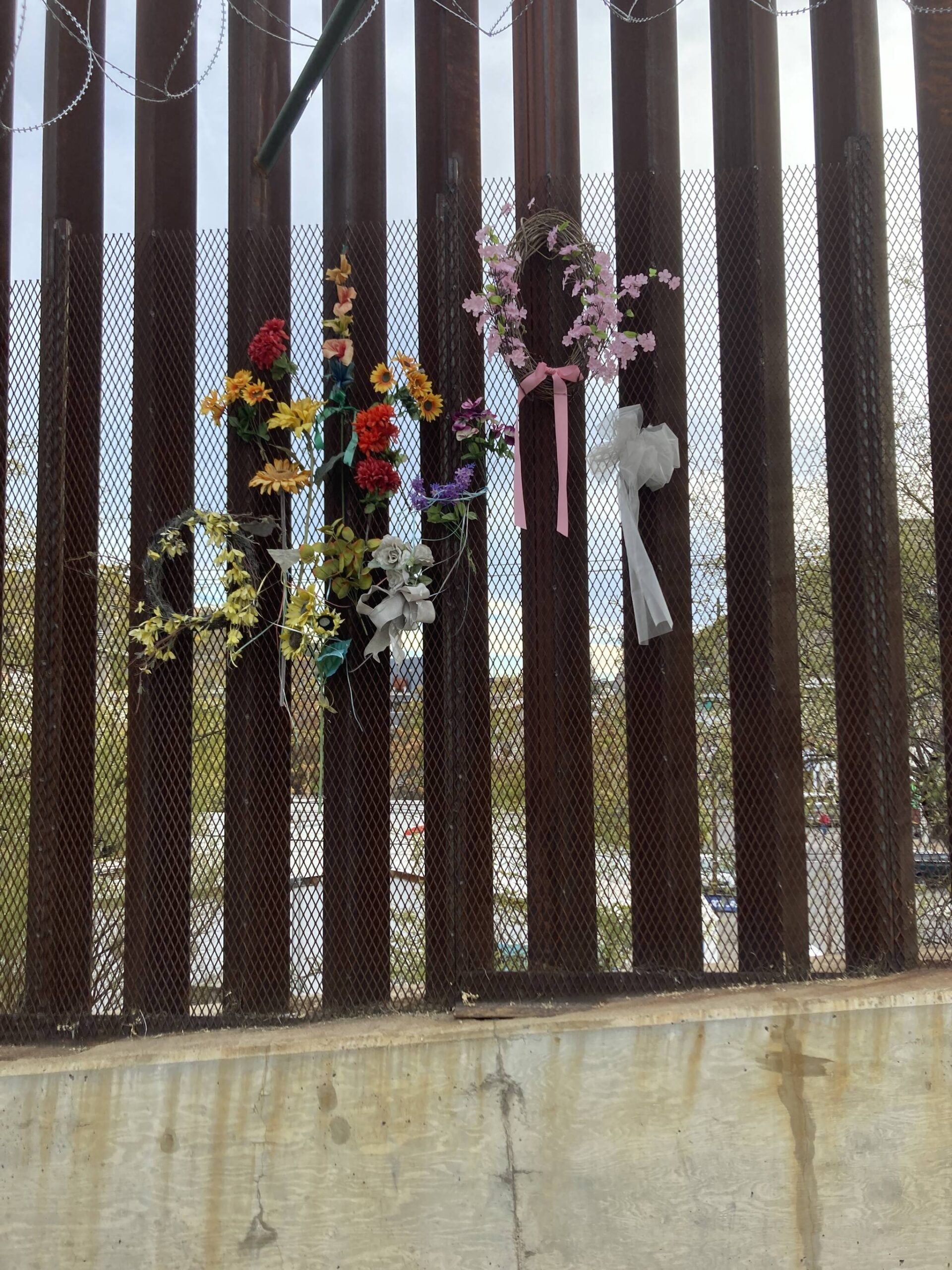 “We were talking with Pancho and Rita when a kid, probably fifteen, and two adults started to climb over the wall,” Sydor said. Where the class was standing, the border wall is about thirty-feet tall and strung with barbed wire, with scraps of clothes and hair caught in the fencing. The group was standing next to a memorial for a child who had been caught throwing rocks at the wall and was shot by U.S. Border Patrol.