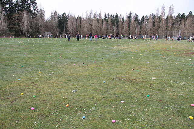 This year’s mEGGA Hunt at Battle Point Park attracted several thousand egg-hunters, families and friends.