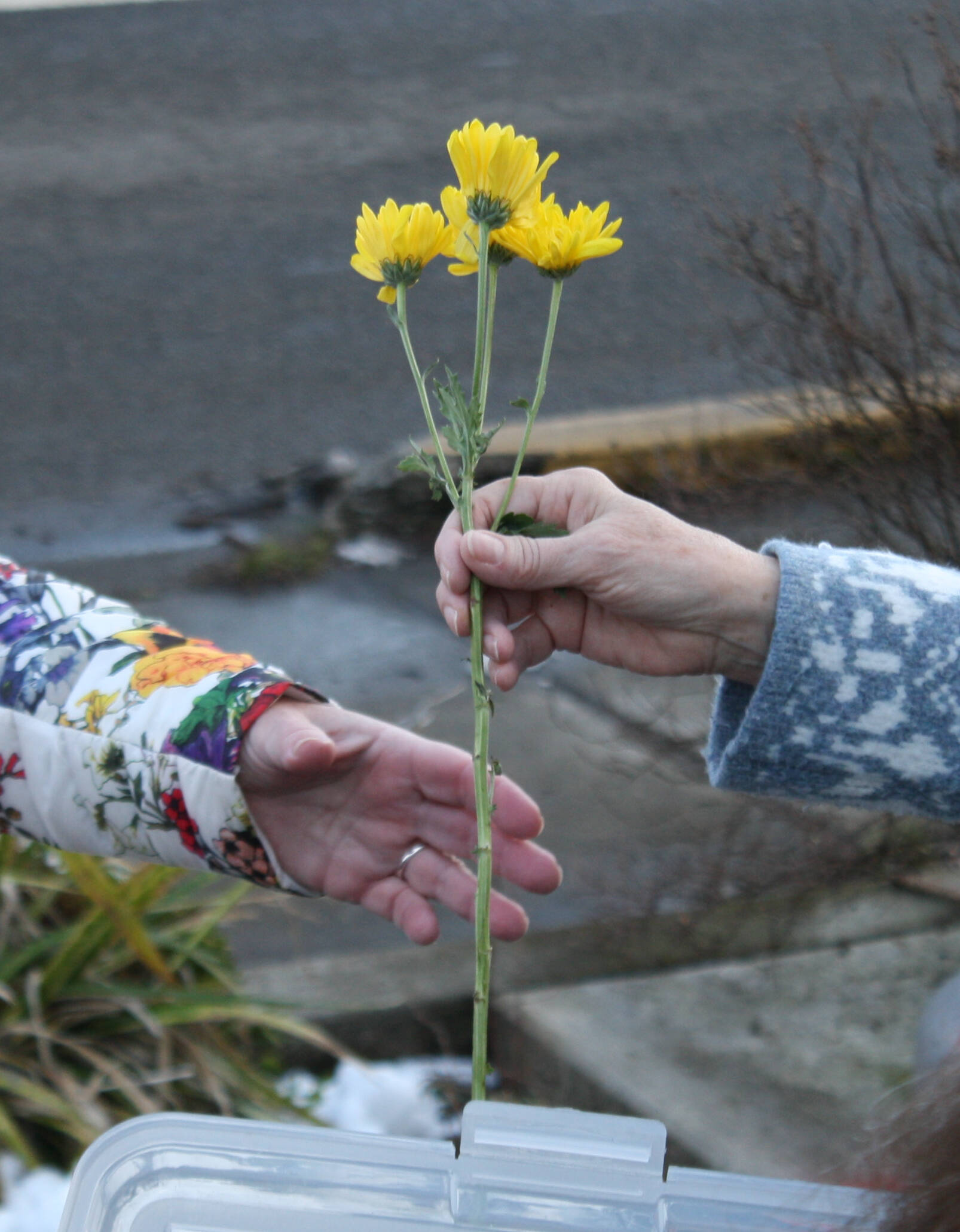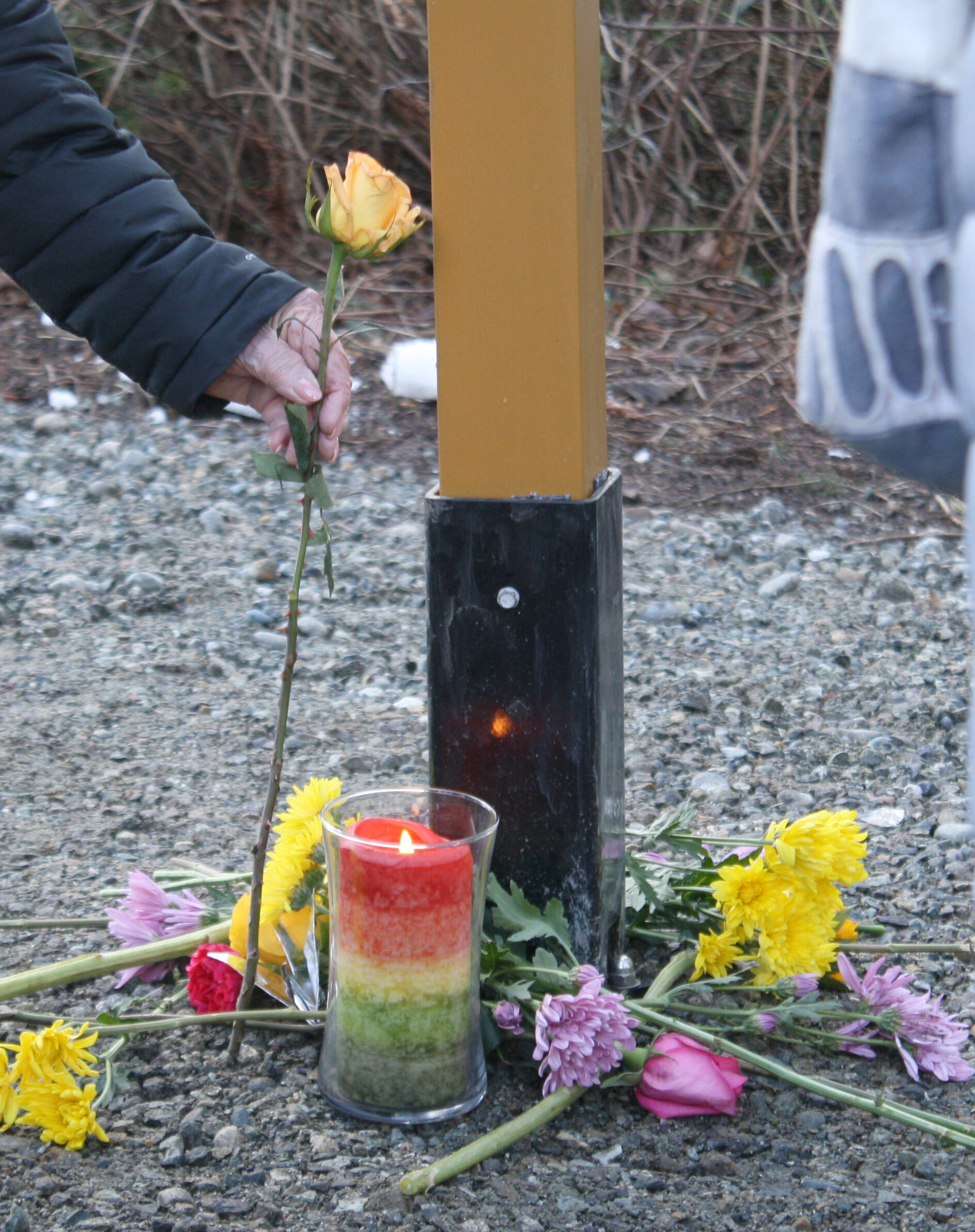 Some attendees selected paper cranes to place at the pole, courtesy of the BI Japanese American Exclusion Memorial.