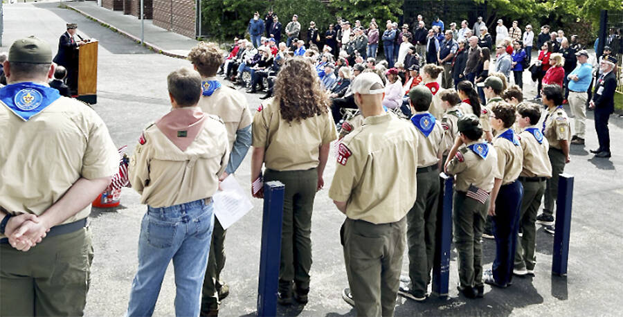 Alongside the veterans, dozens of young Scouts listened to one of their own, Eagle Scout and BHS senior Bodie Harrison Strom, who gave the keynote speech.