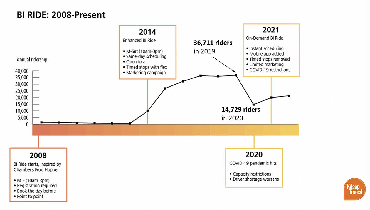 During public comments, Stephan Goldby of the BI chamber said BI Ride needs to focus on service improvement. To help people in the workplace, it needs to expand its hours.