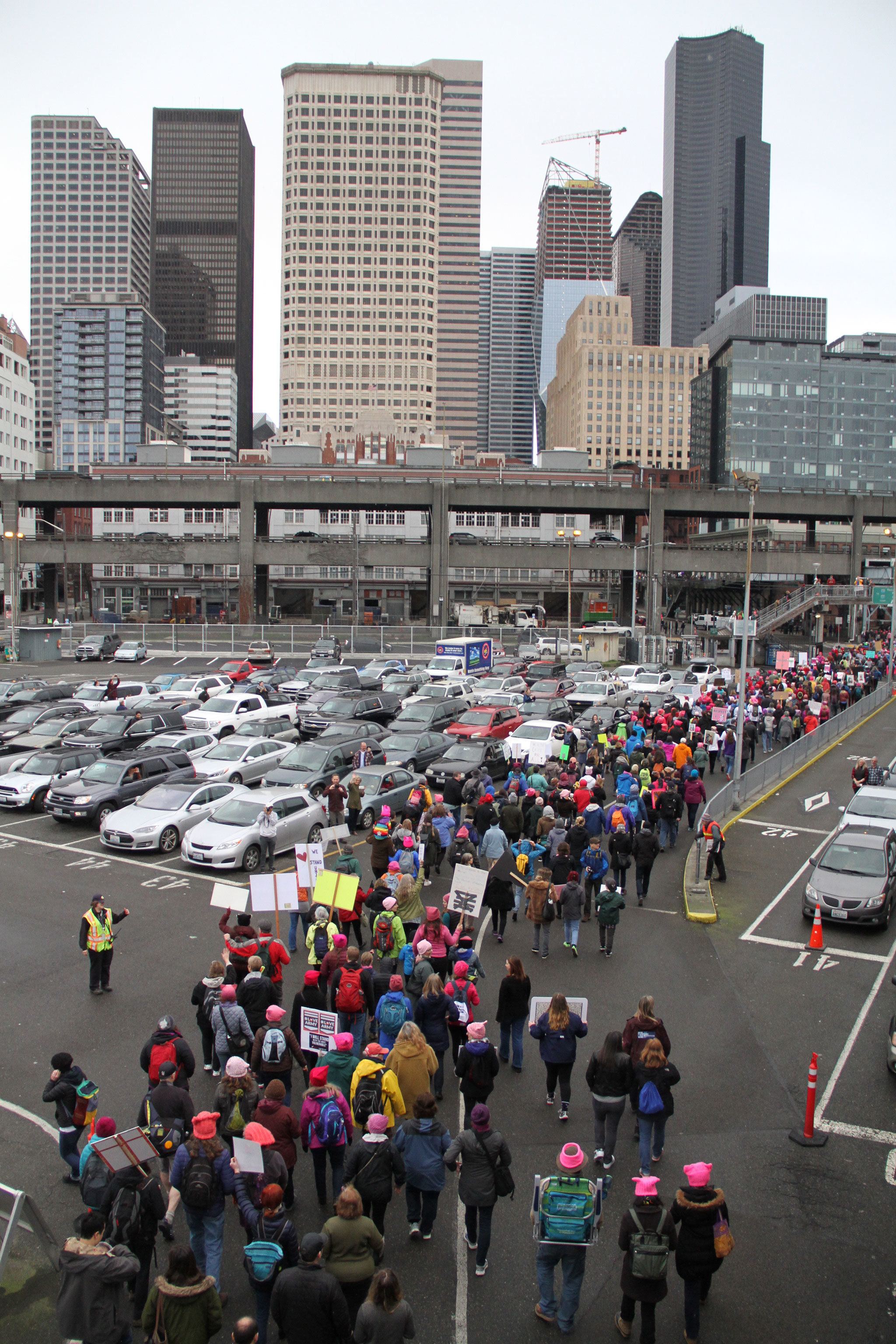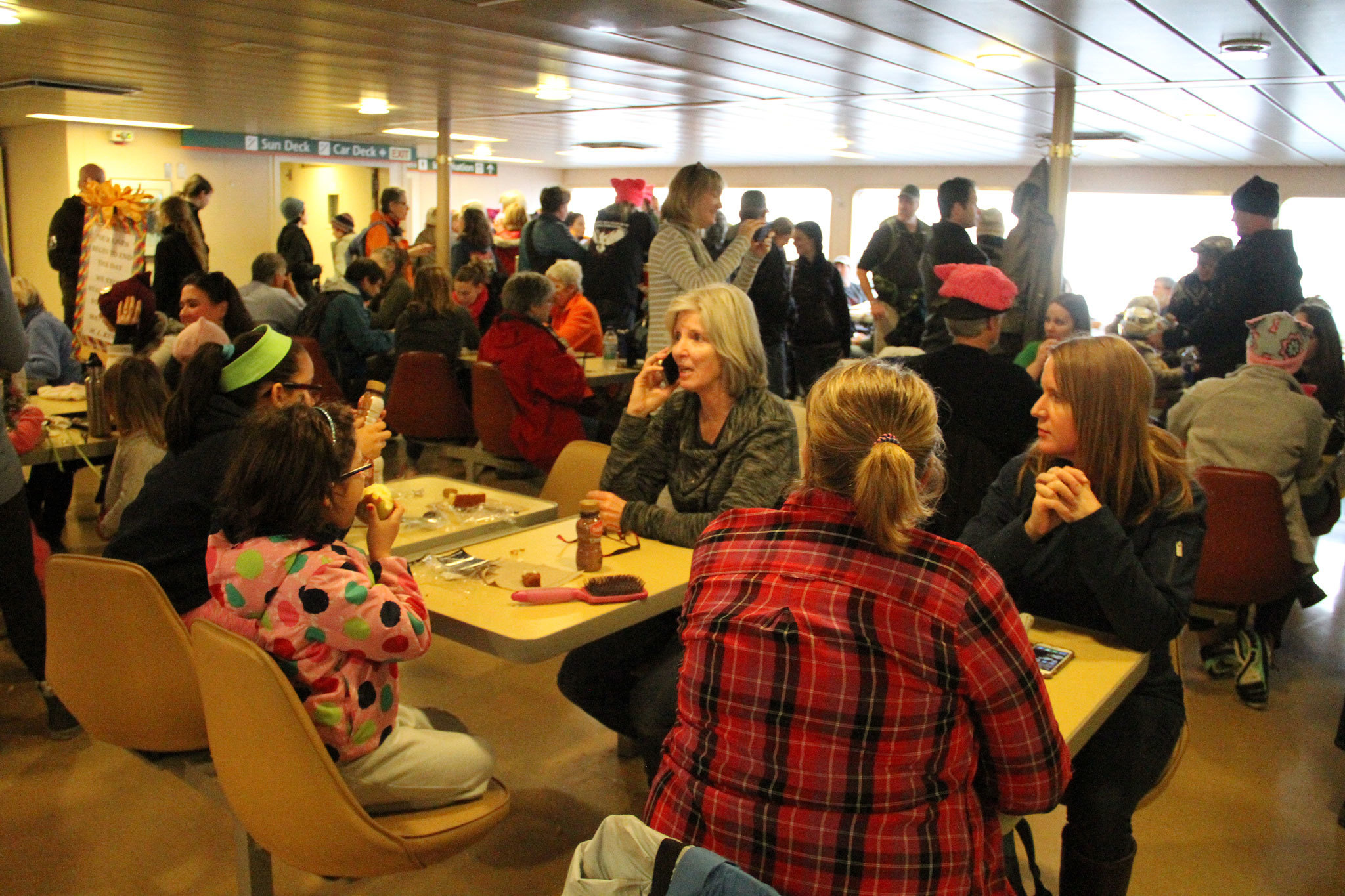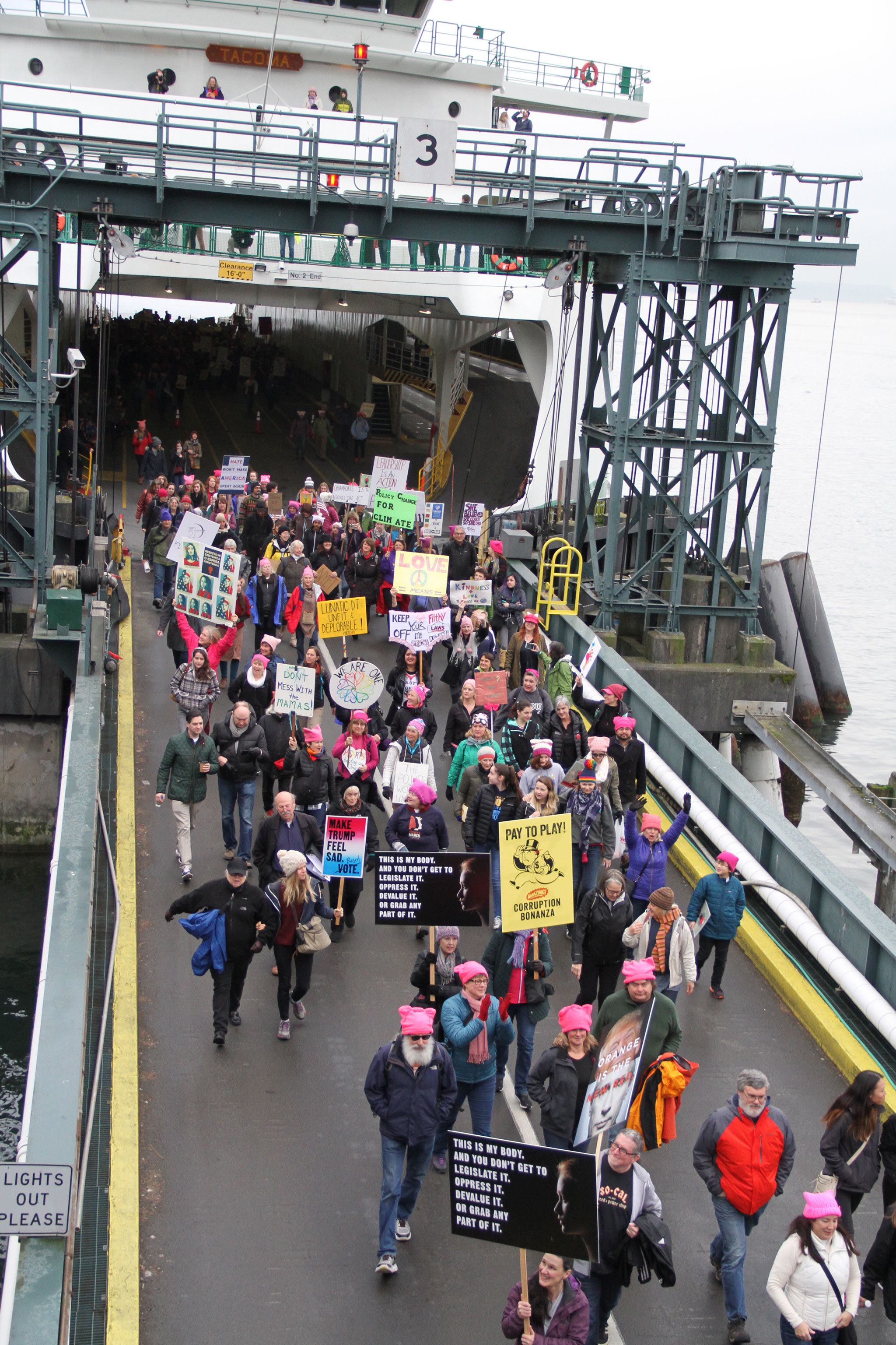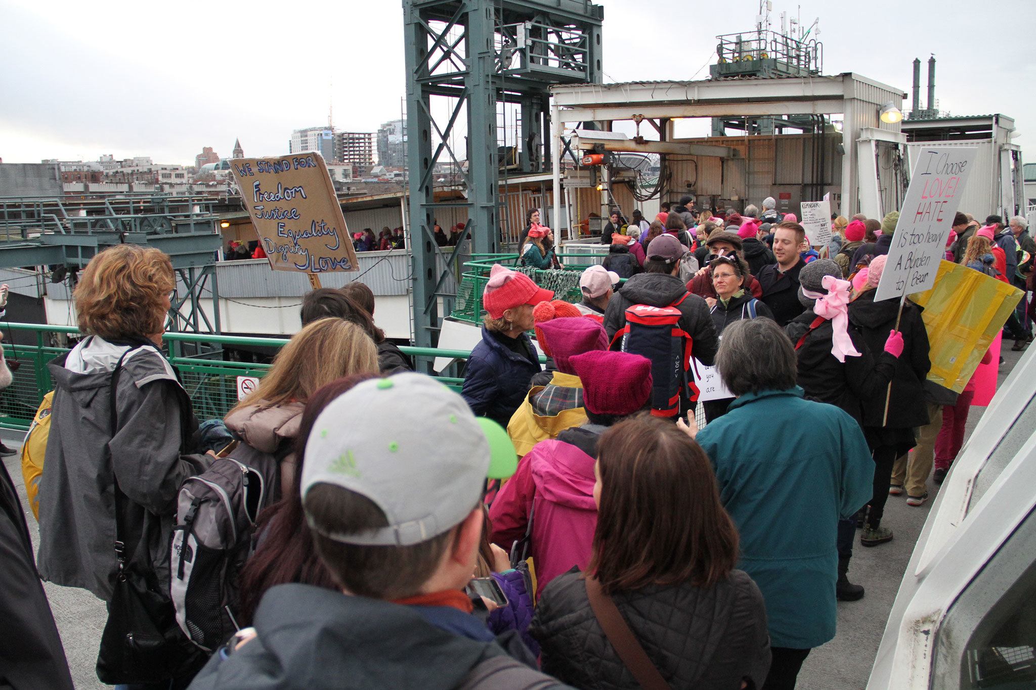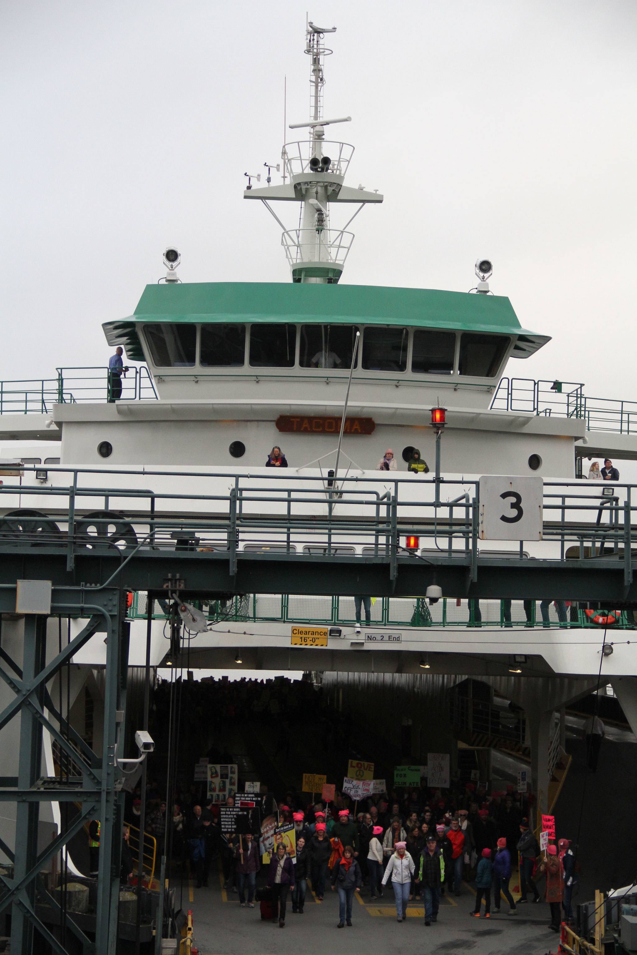 Many of the marchers caught the 8:45 a.m. boat, which WSF officials said was just below its capacity for 2,499 passengers.