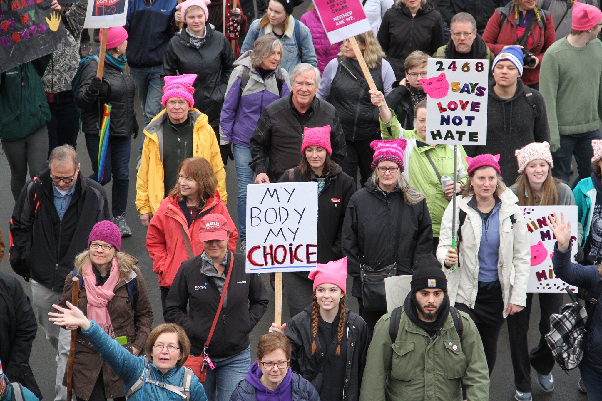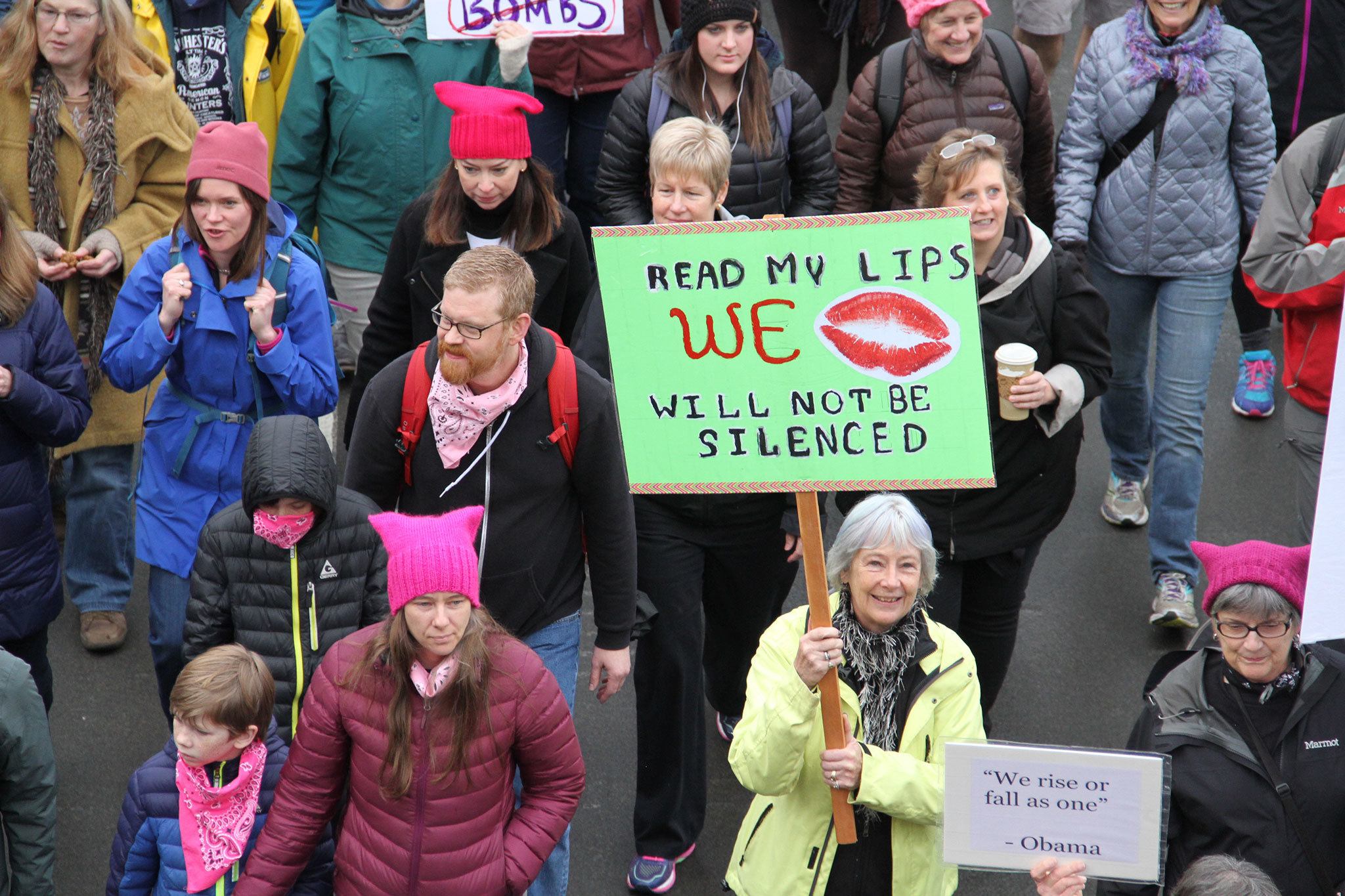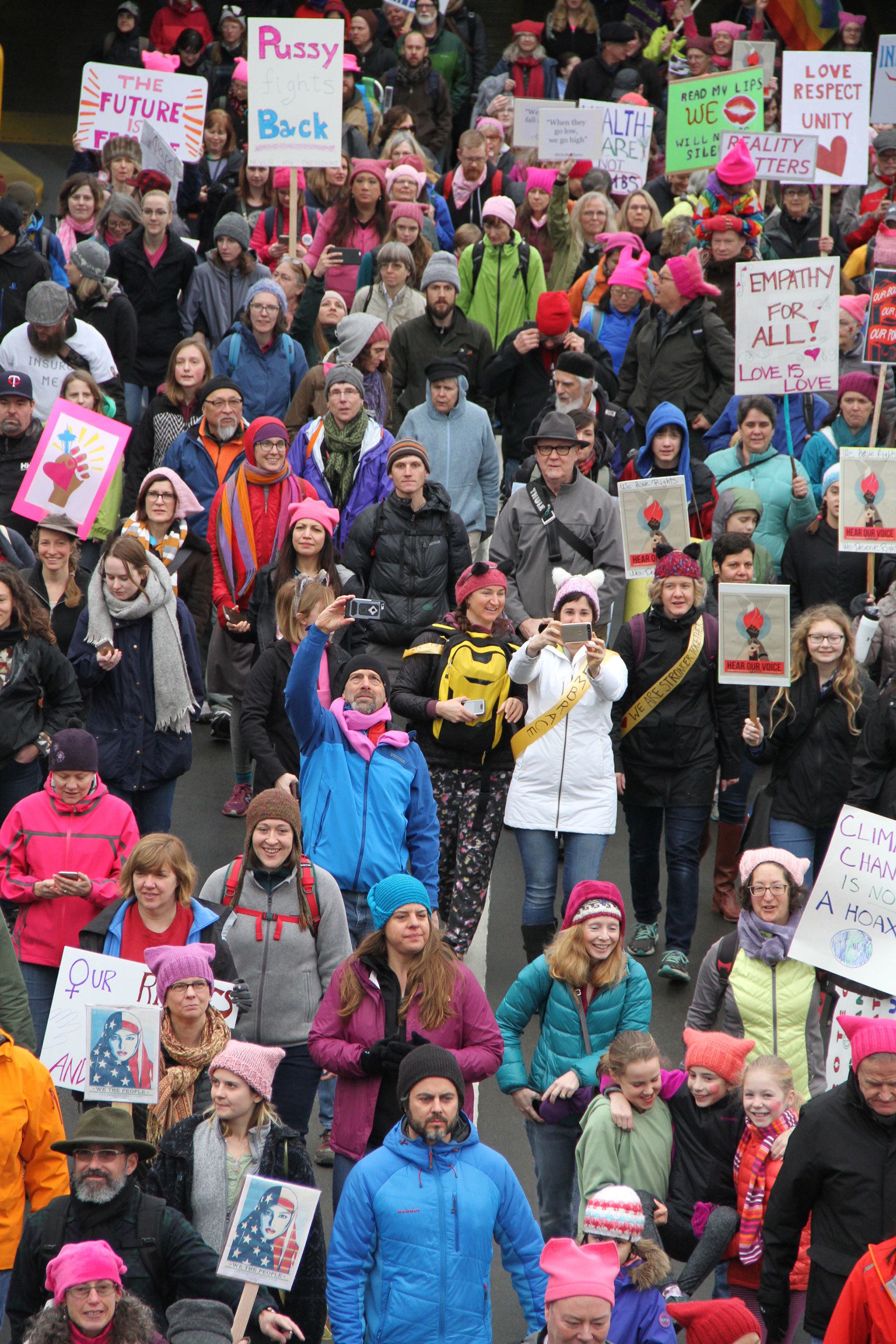 Marchers from Bainbridge Island clogged the Bainbridge Island Ferry Terminal Saturday on the way to the Seattle Womxn’s March.