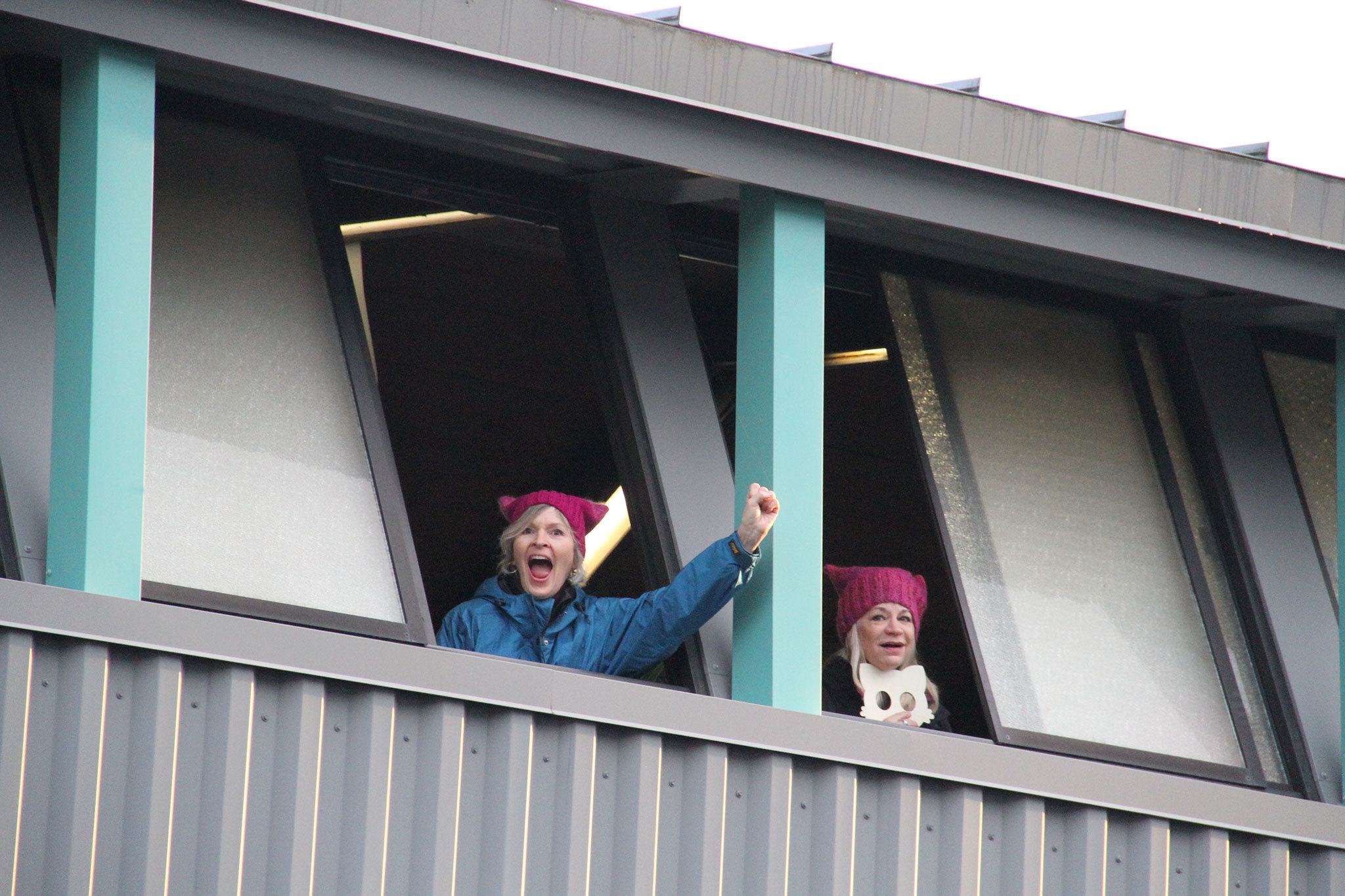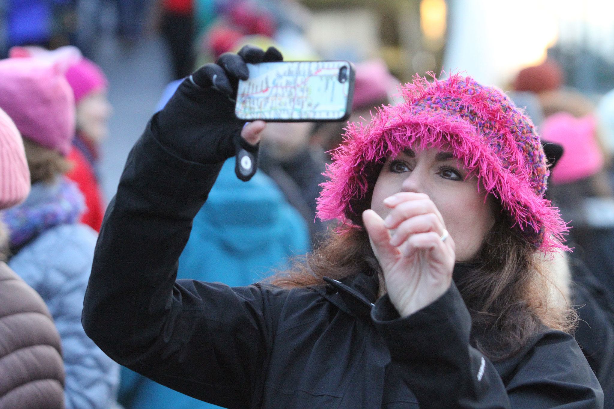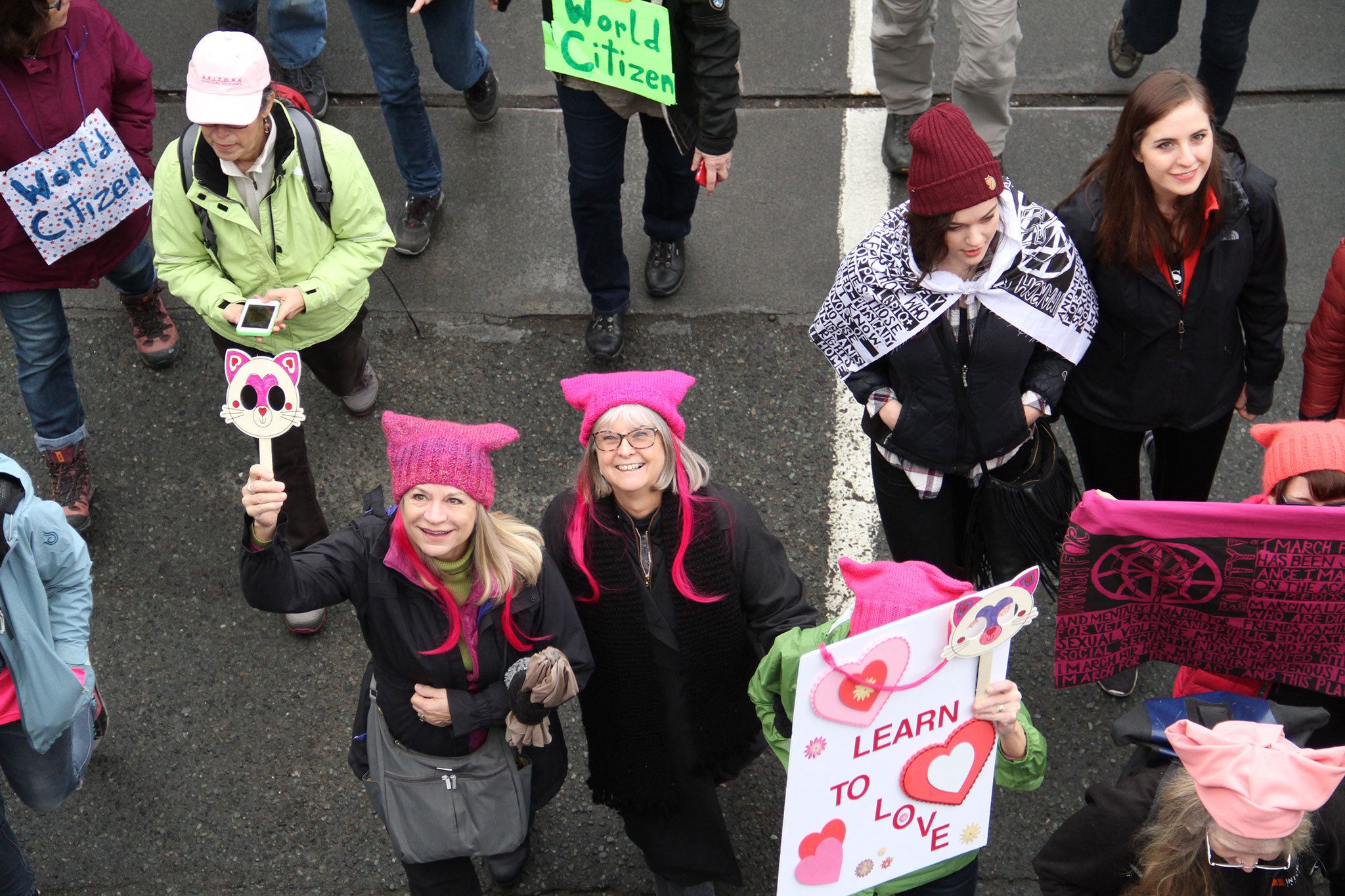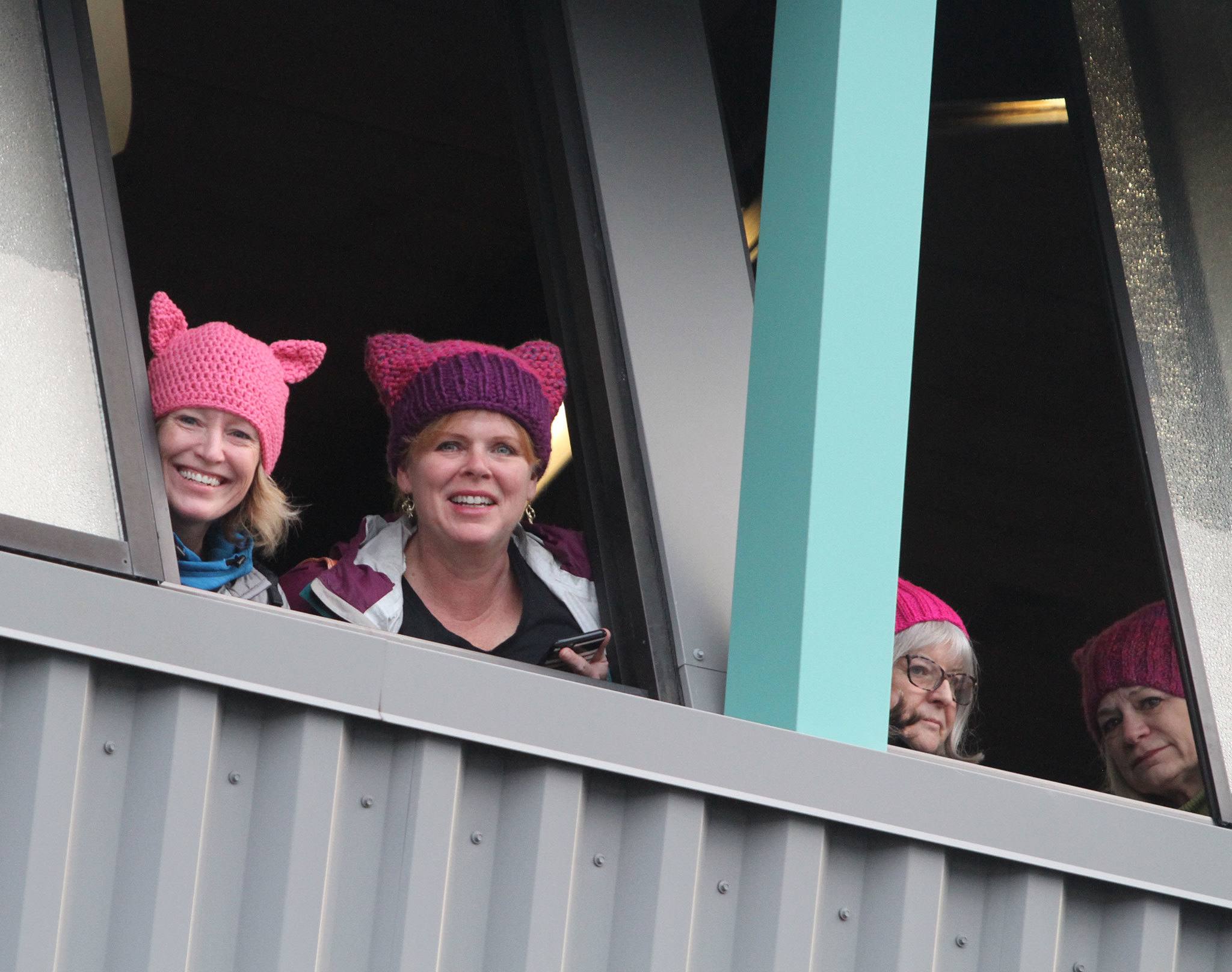 Marchers from Bainbridge Island clogged the Bainbridge Island Ferry Terminal Saturday on the way to the Seattle Womxn’s March.