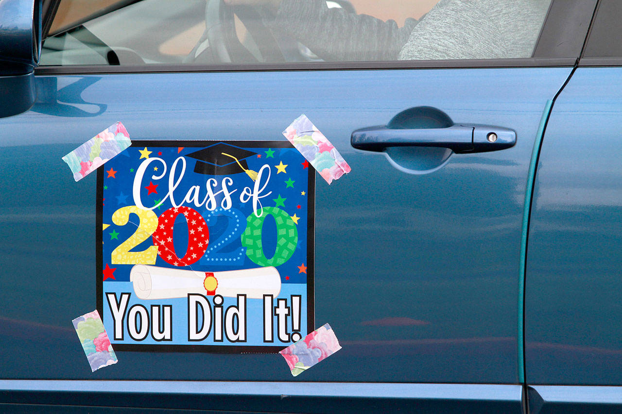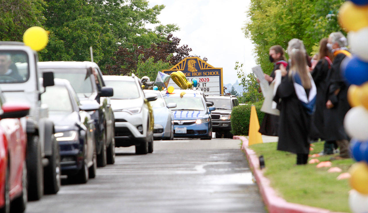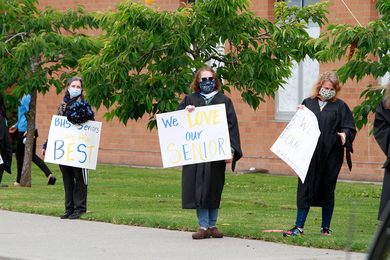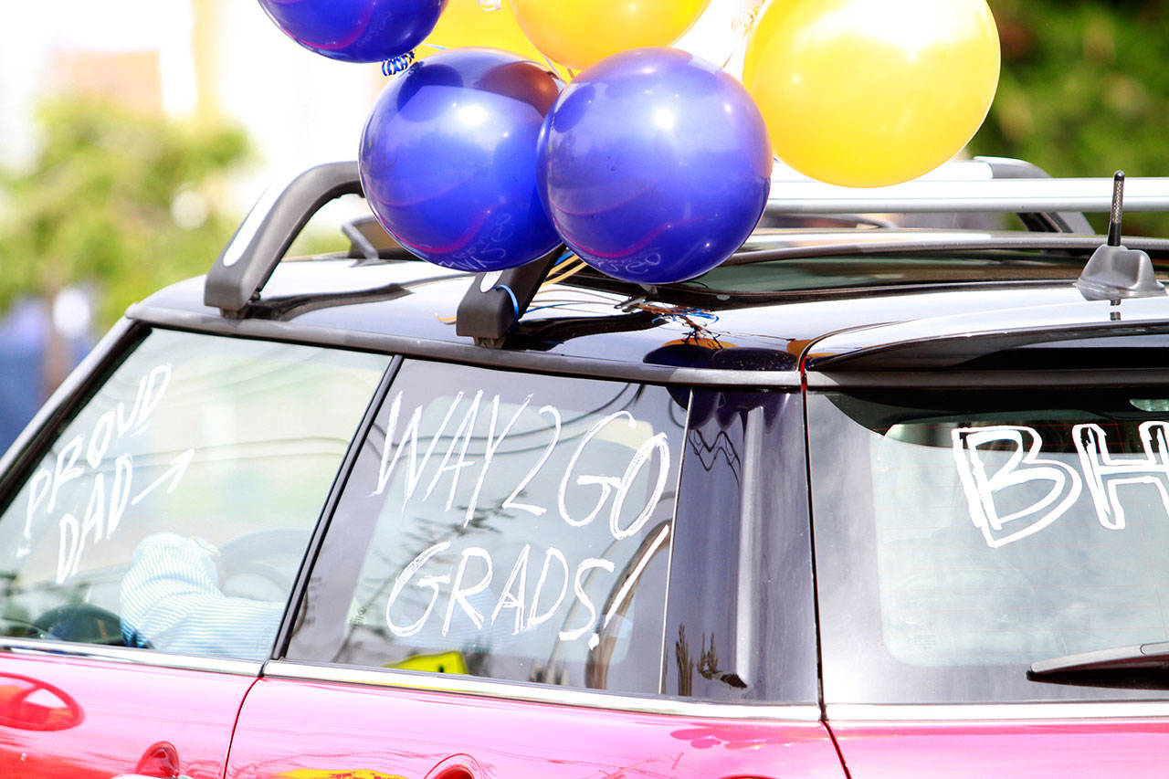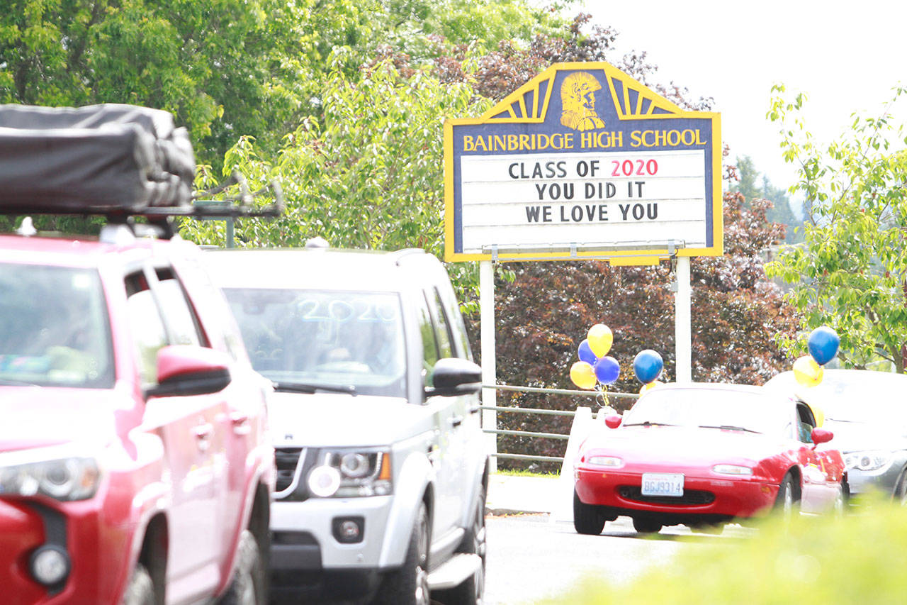 A drive-thru commencement ceremony may not have been the finale they’d spent four years envisioning, but the graduating seniors of the Class of 2020, with the help of their family, teachers and friends, eagerly bedecked the front of Bainbridge High School and their respective cars with festive adornments and made the best of things Saturday.