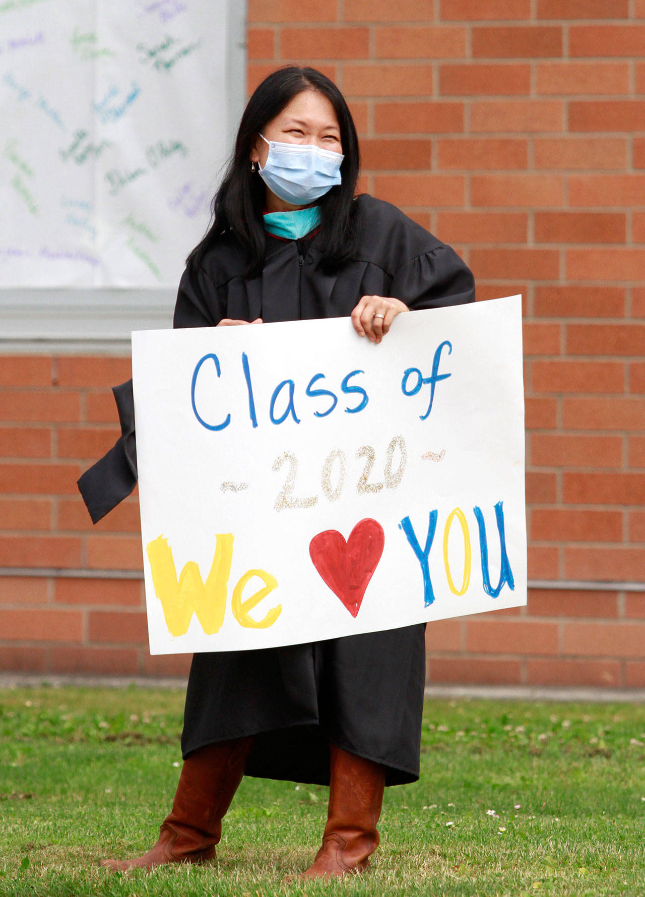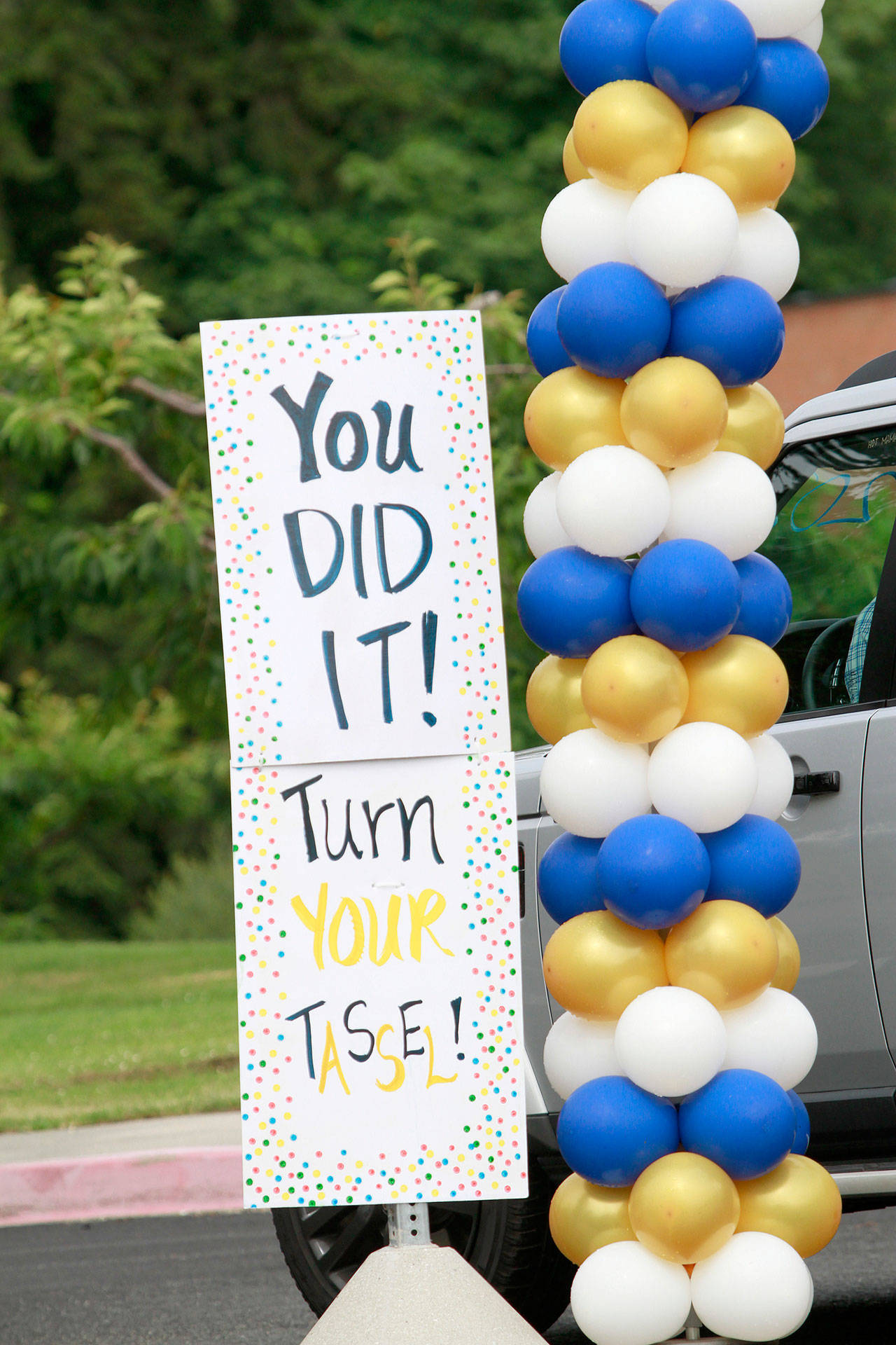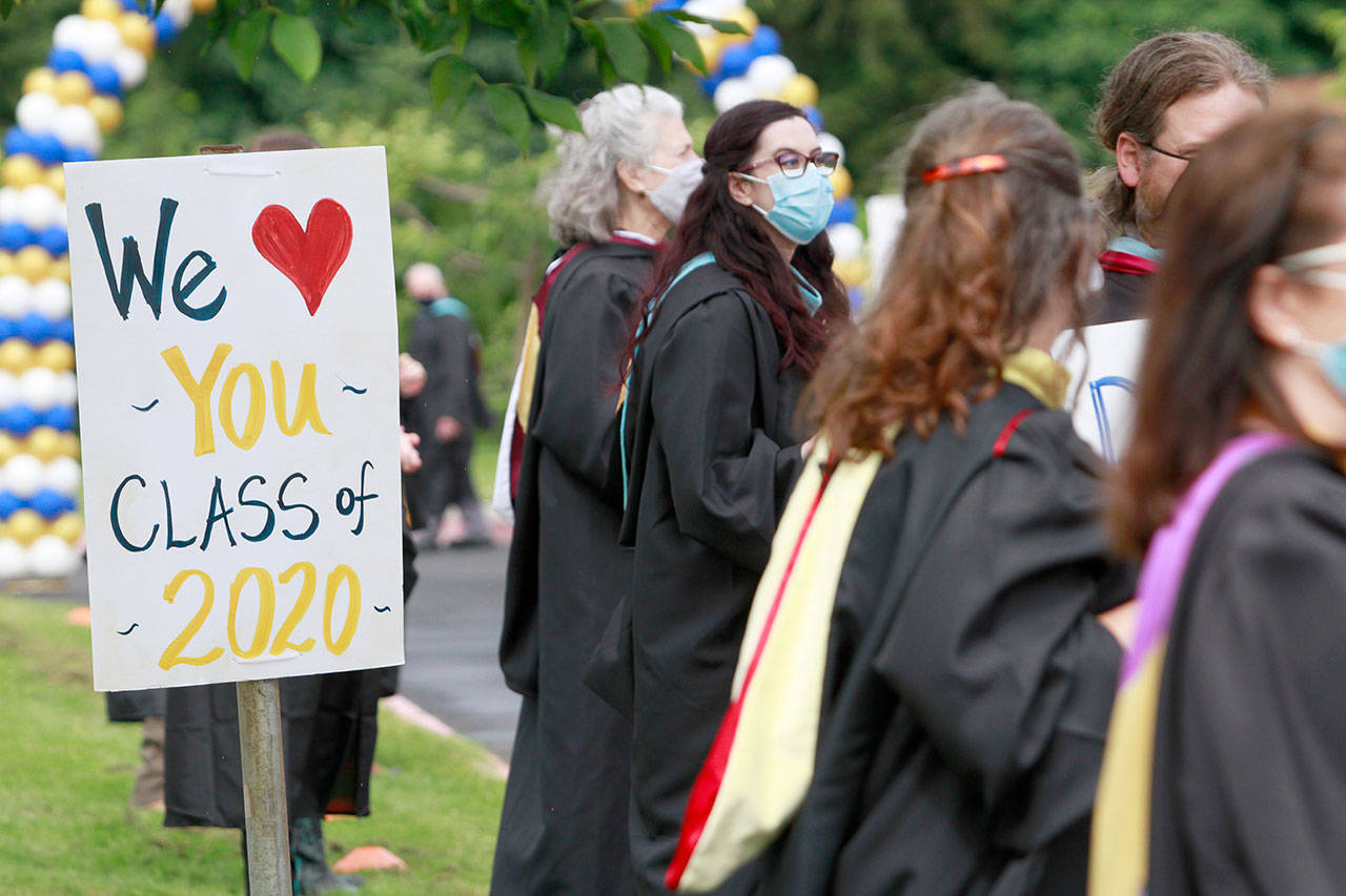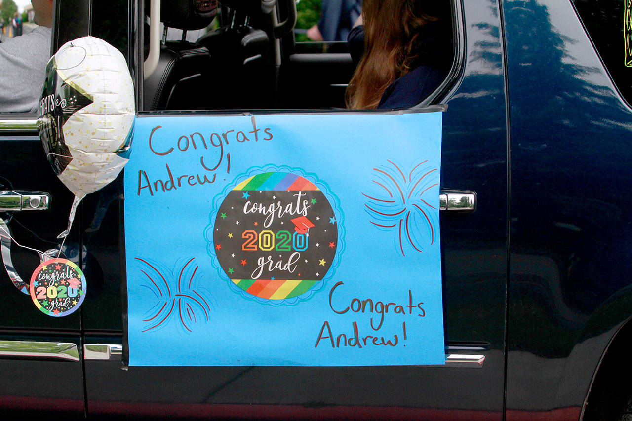 A drive-thru commencement ceremony may not have been the finale they’d spent four years envisioning, but the graduating seniors of the Class of 2020, with the help of their family, teachers and friends, eagerly bedecked the front of Bainbridge High School and their respective cars with festive adornments and made the best of things Saturday.