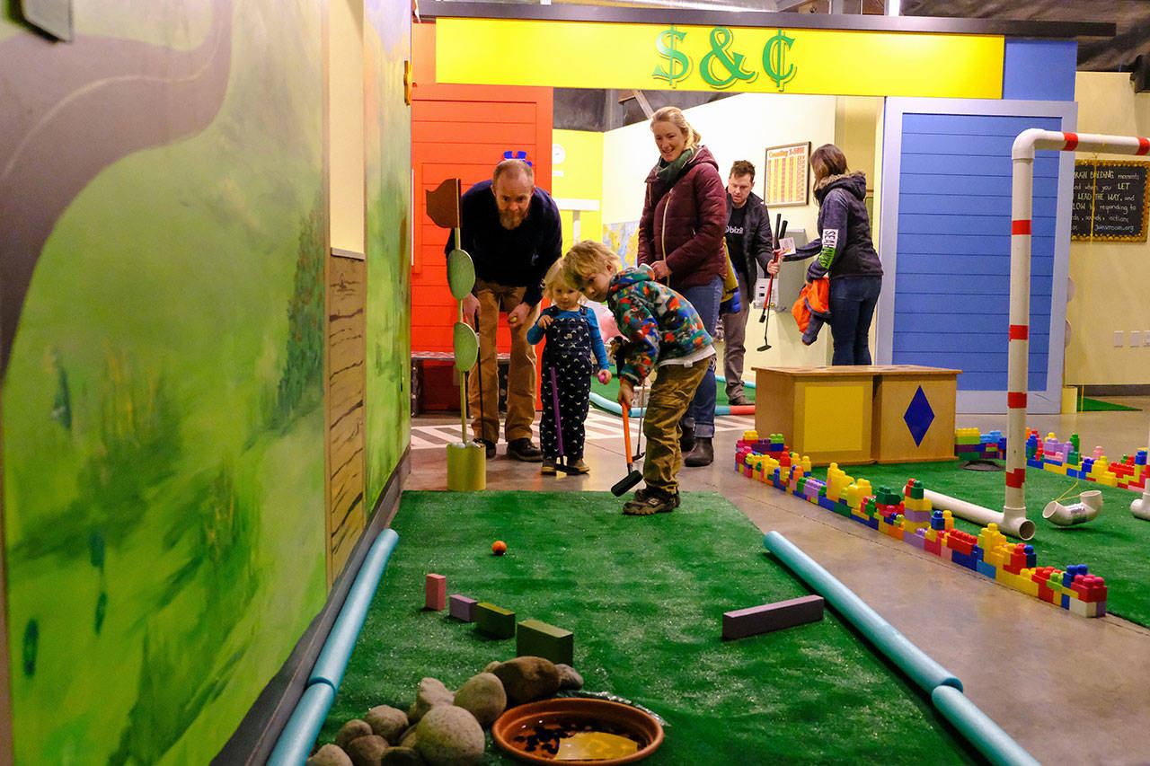 Families putted over, under and through Kids Discovery Museum’s exhibits in support of early learning during the nonprofit children’s museum first KiDiMu Masters miniature golf fundraiser.                                (Photos by Jennifer Jones/Sparkson Photography)