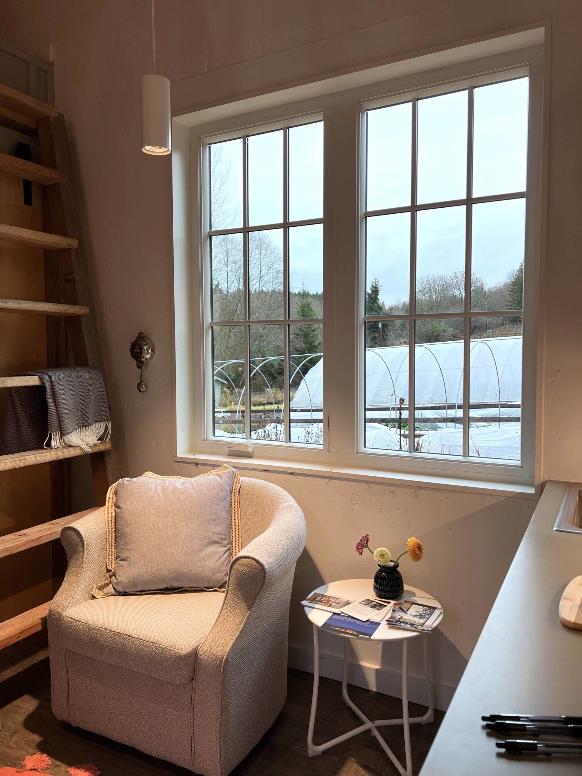 Living room with a view of the farm.