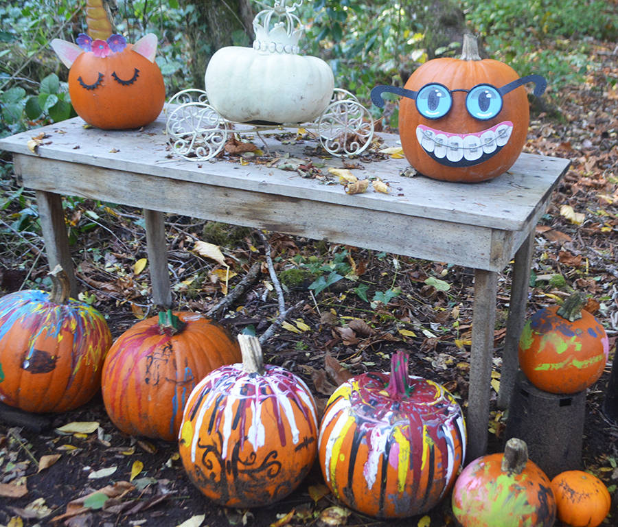 This year, in an effort to spread out the crowds, it was changed to a month long. Instead of at night, it’s during the day. And instead of carved jack o’ lanterns with candles the pumpkins are painted by community members and placed along the Trail of Pumpkins.