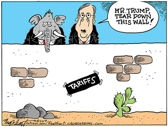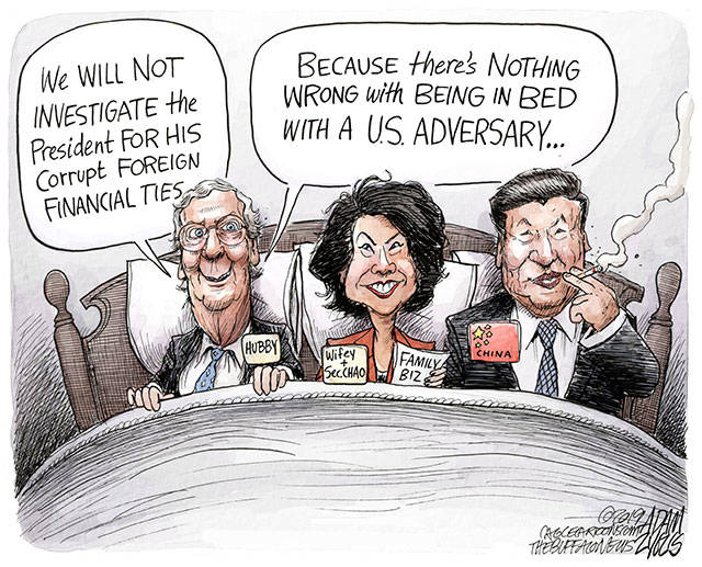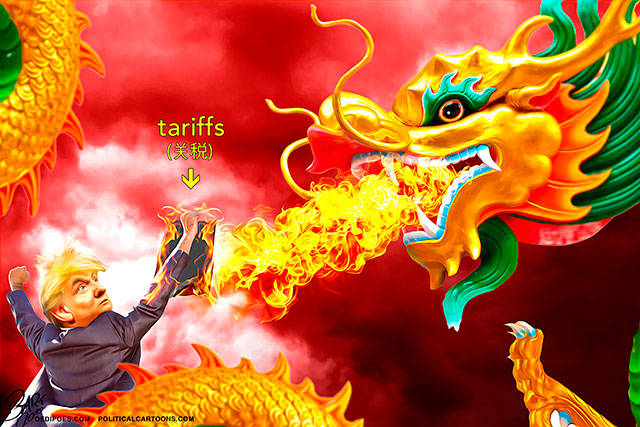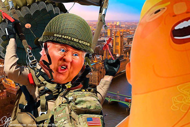 Our cartoon chronicle of the 45th president continues with a look back at President Donald J. Trump’s 124th week in the White House. God save the Queen.