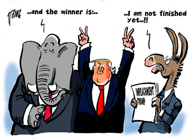 Our cartoon chronicle of the 45th president* continues with a look back at Donald J. Trump’s 156th week as president.