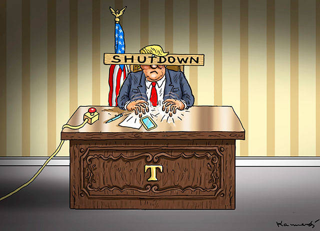 Our cartoon chronicle of the 45th president continues with more fallout from his comments about Haiti and African countries, the FBI investigation into Russian meddling in the 2016 Presidential Election, and the brief federal government shutdown.