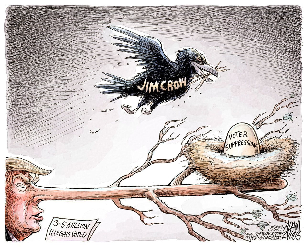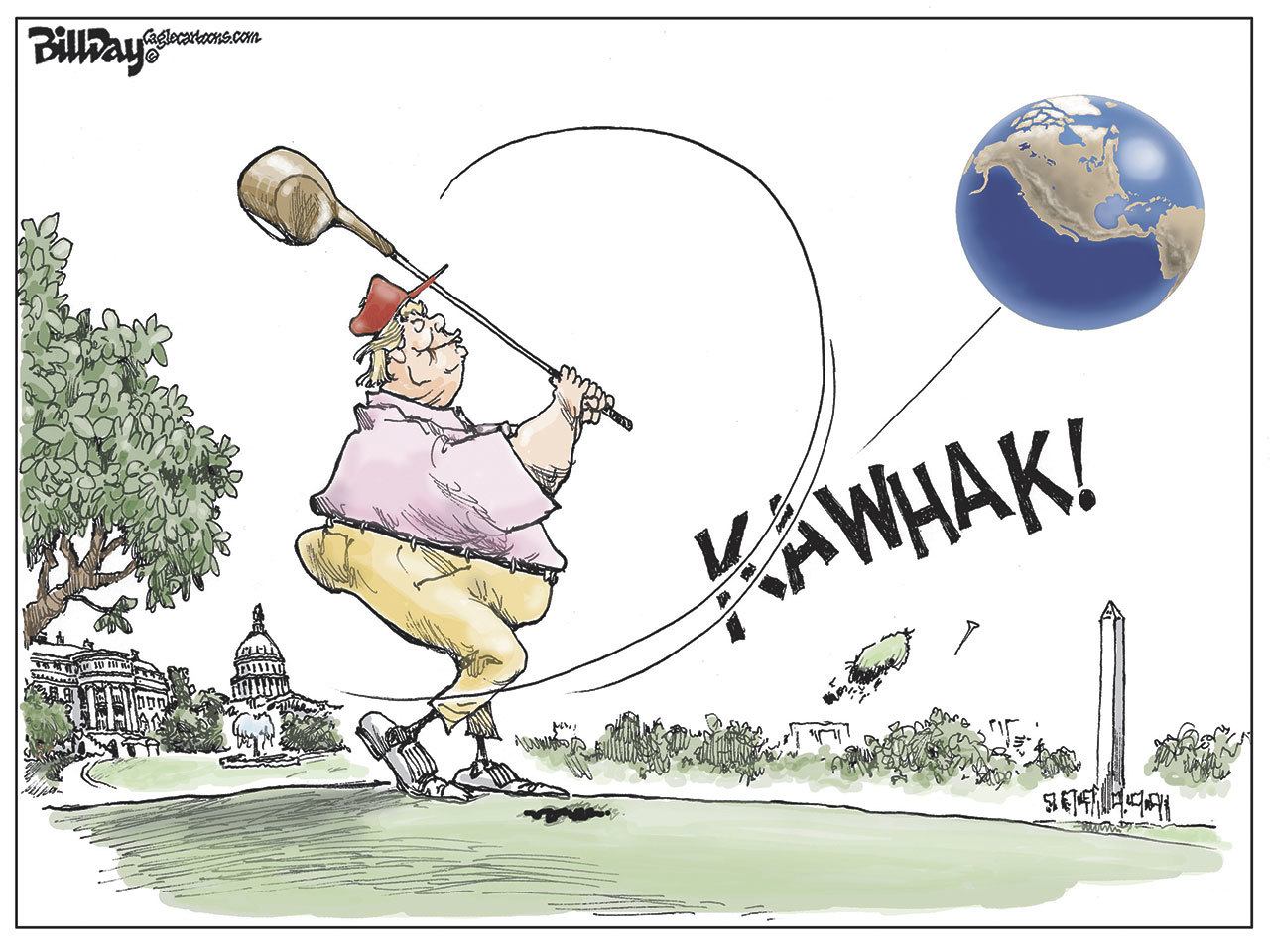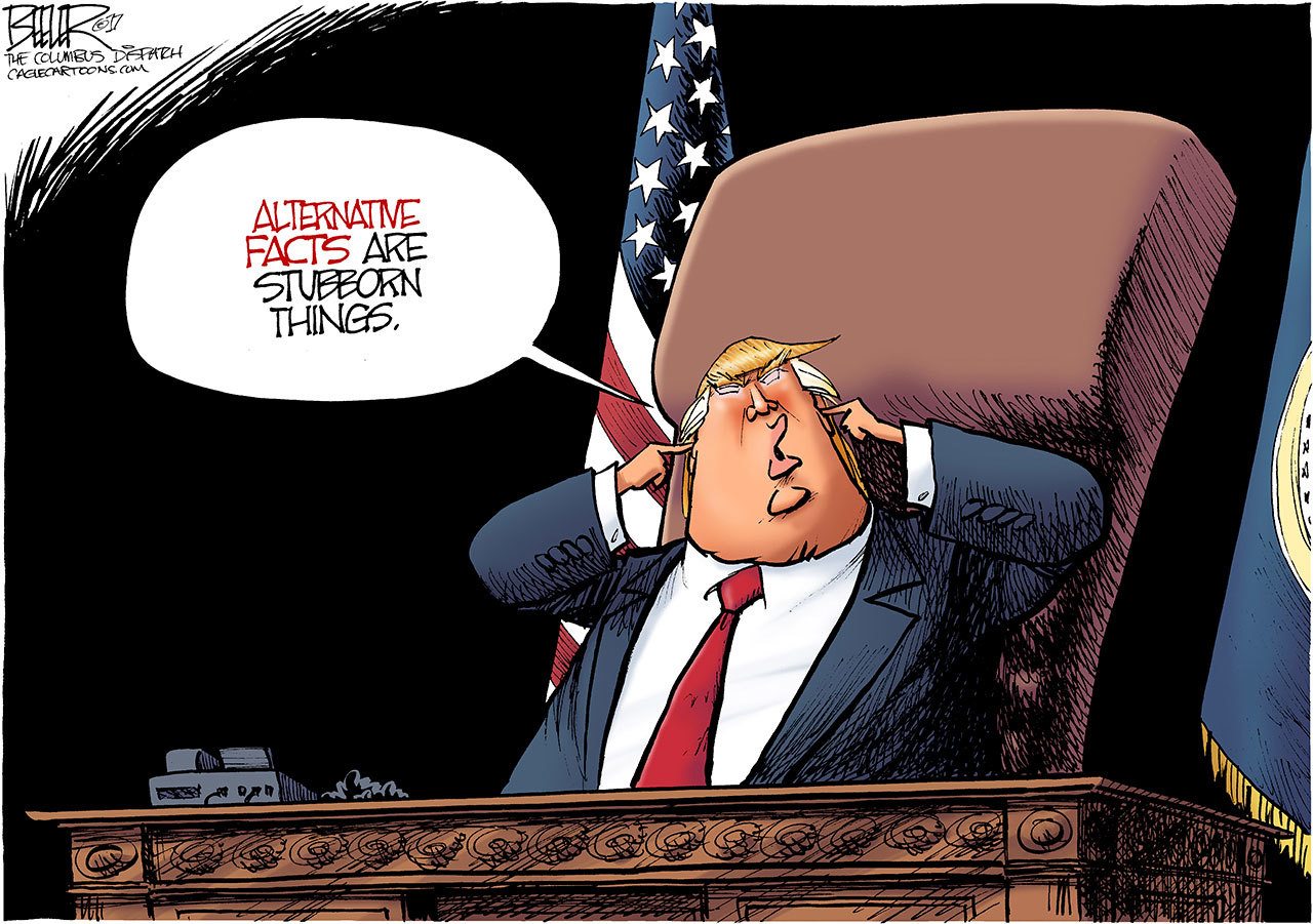 From bogus claims of millions of illegals casting votes last November, to “alternative facts” to a border wall along the country’s southern border, cartoonists were challenged, no doubt, by the activity at 1600 Pennsylvania Avenue.