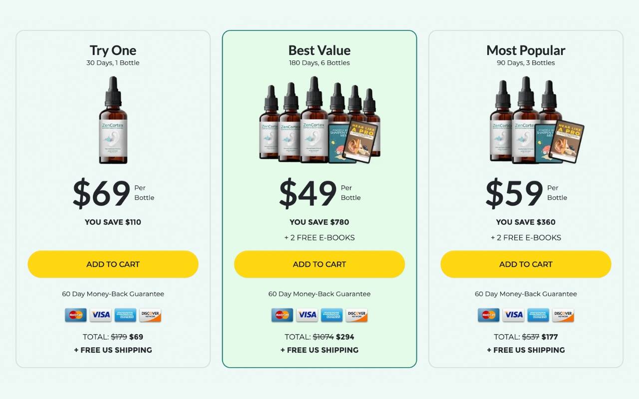 These diverse pricing options cater to different needs and durations, ensuring you find the perfect supply that aligns with your requirements. Each purchase is backed by a 60 Day Money-Back Guarantee, providing you with confidence in your investment in ZenCortex.