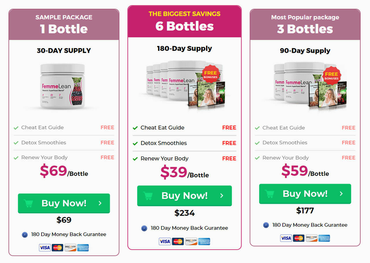 You can now order FemmeLean Female Metabolism Booster on the official website. The current discounted prices are as follows: