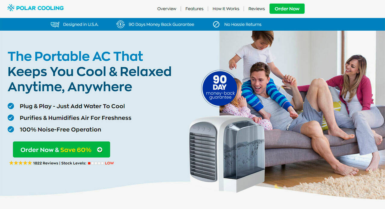 Polar Cooling is a portable air conditioner available exclusively through GetPolarCooling.com.
