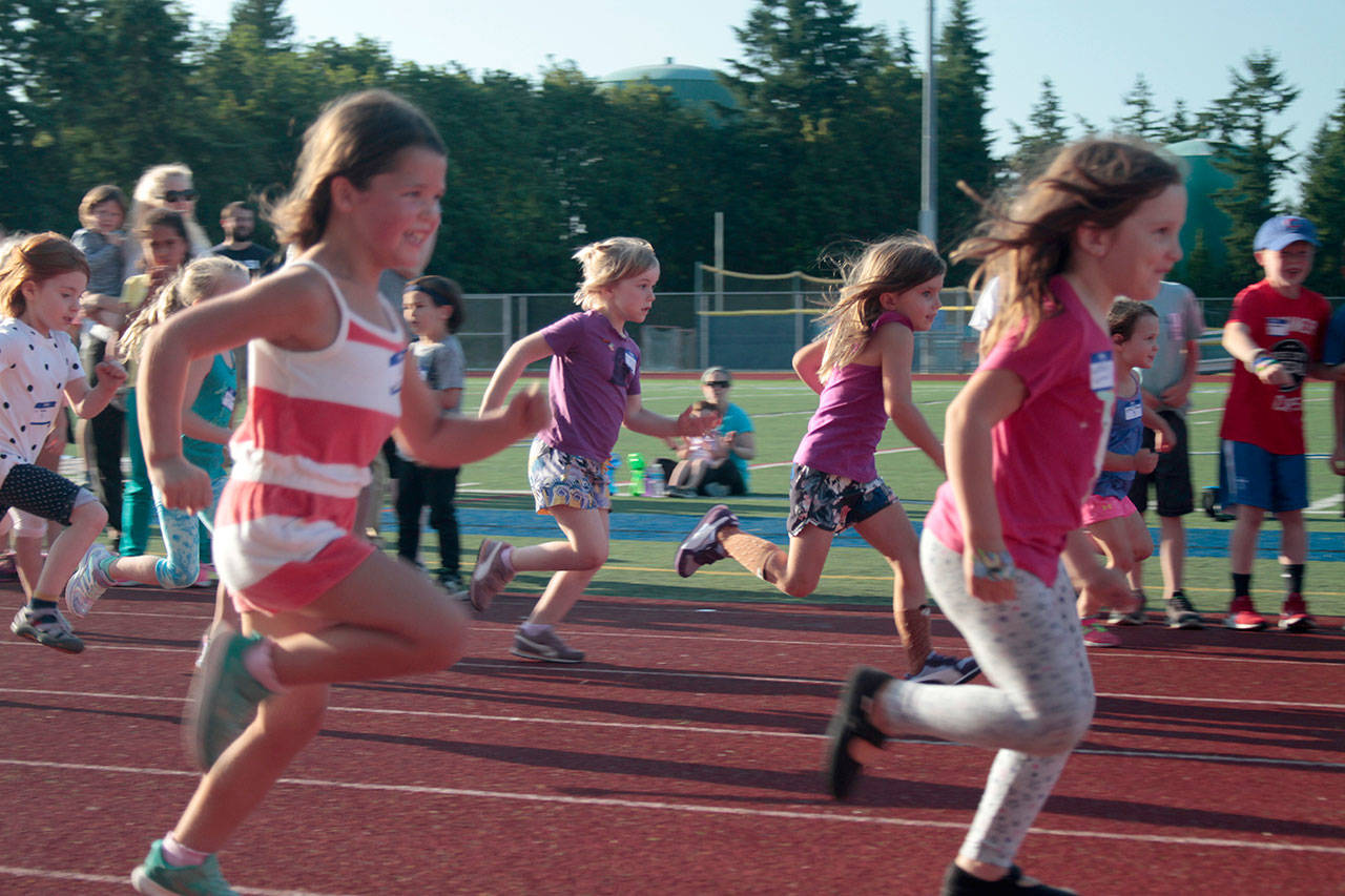 This week’s meet is the first of six to be held this summer. The remaining five free community track meets, sponsored by the Kiwanis Club of Bainbridge Island, continues Monday at the high school track.