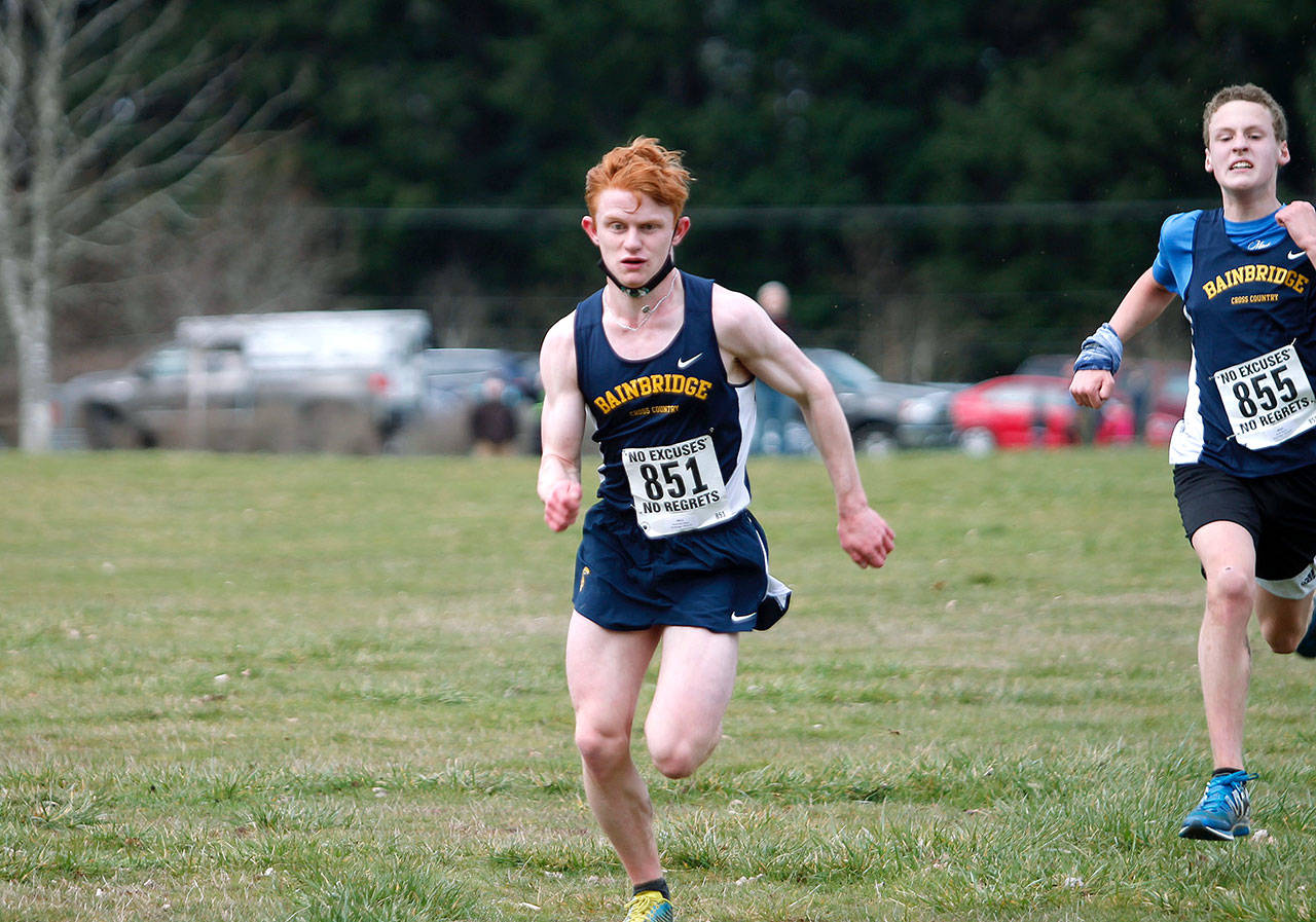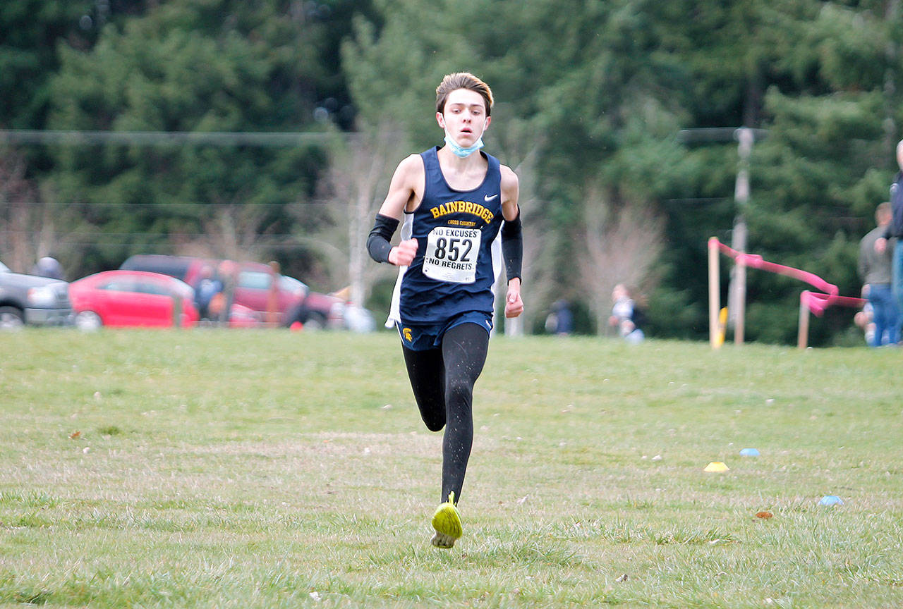Miller gutted it out and still finished second. His 18:56.6 mark was just three-tenths of a second ahead of Bainbridge freshman Bodie Strom. Abe Cole was just behind those two with a time of 18:58.8, and Nick Grant was fifth in 19:31.2.