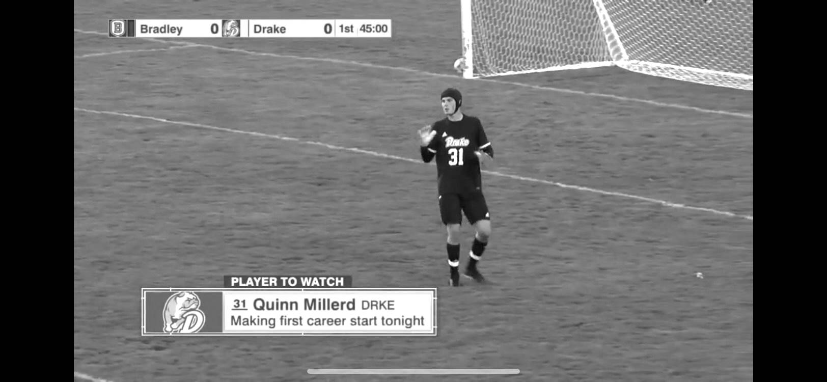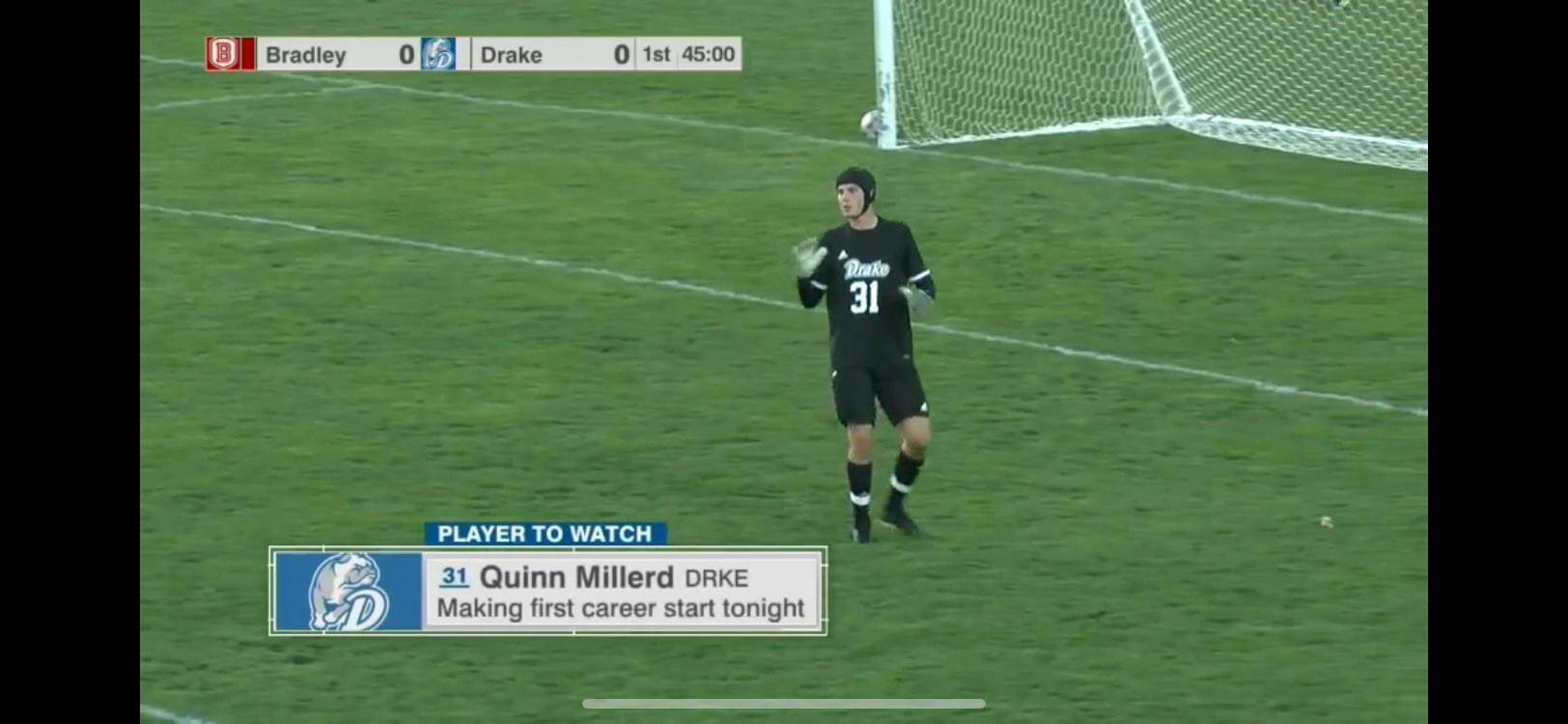 Of Millerd, Drake coach Gareth Smith said, “”A big time performance and debut from Quinn Millerd in goal. His hard work and preparation over the last year has prepared him well, and he made some important saves throughout the game.”