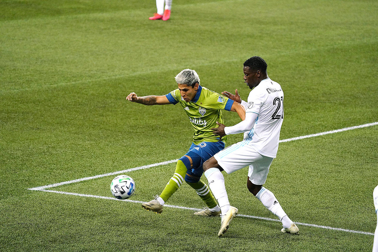 Sounders forward Raul Ruidiaz had the match-tying goal in the 89th minute. (Mike Fiechtner/Sounders FC Communications)