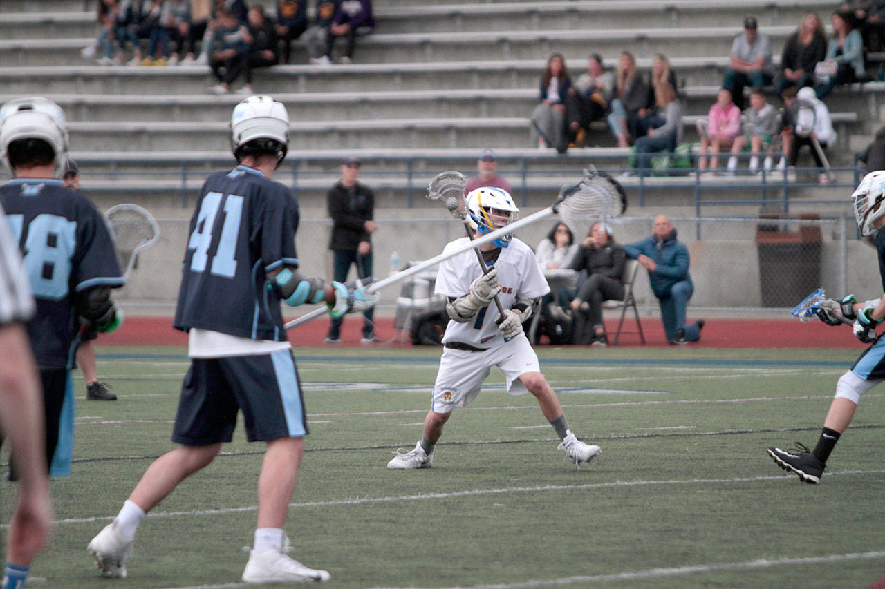 After easing through a bye in the first round of this year’s playoff bracket, the Bainbridge High varsity boys lacrosse team breezed through a beautiful 18-5 win at home against Gig Harbor Saturday, May 18 to advance to the semifinals.