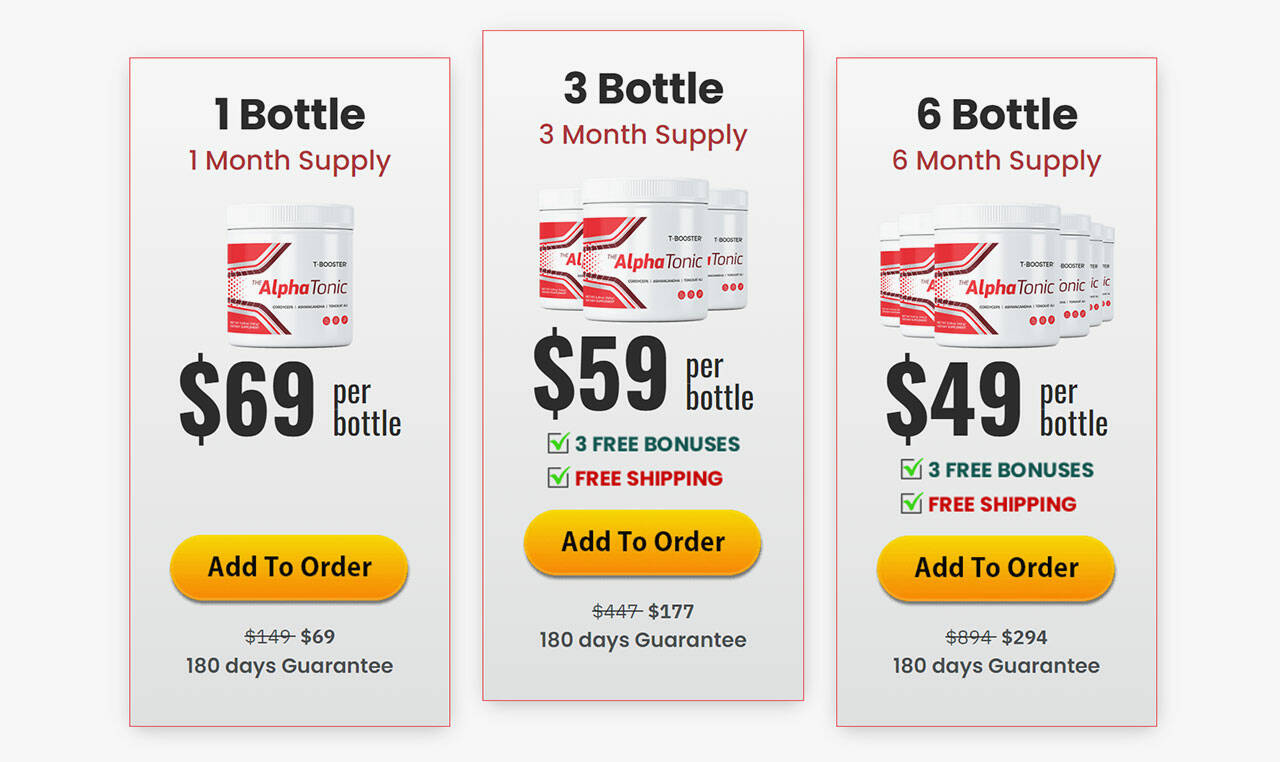 If you want to boost your sexual vitality and experience the testosterone benefits by consuming Alpha Tonic, you can order it from its official website. This product is sold in three packages, and you can choose either one of them to boost energy levels when it comes to your sexual performance. These packages are: