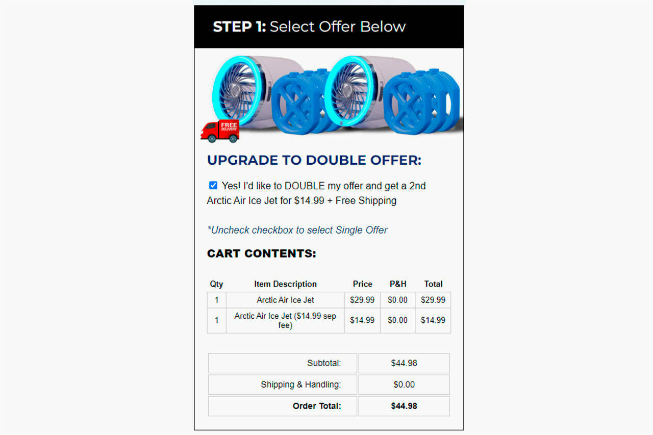 Arctic Air Ice Jet is $29.99 per fan. As part of a double-offer upgrade, you can pay an extra $15 for a second fan.