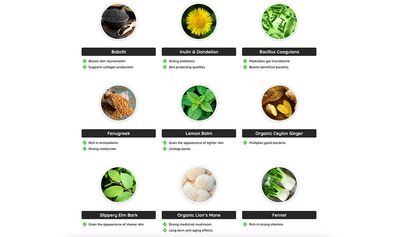 Babchi: Neotonics contains an ingredient called babchi to boost skin rejuvenation and support collagen production.